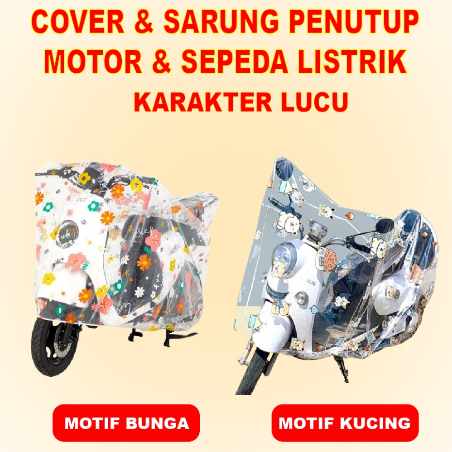 FLASH SALE COVER SARUNG PENUTUP MOTOR SEPEDA LISTRIK TRANSPARAN BEAT MIO MOTIF KARAKTER POLOS DINO BUNGA KUCING LUCU SARUNG SEPEDA INDOOR OUTDOOR ANTI AIR WATERPROOF