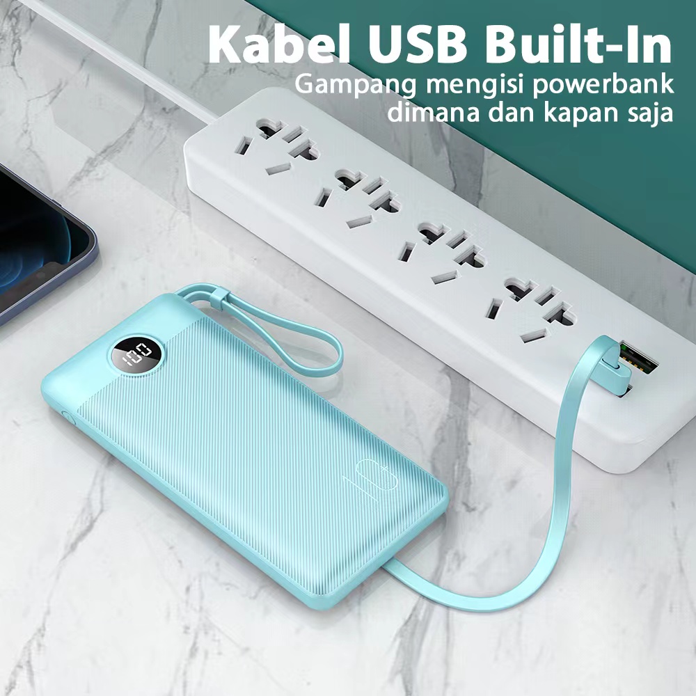 POWERBANK MOFIT M19 10000mAh + FAST CHARGE 2.4A REAL CAPACITY POWER BANK FAST CHARGING BUILT IN CABLE