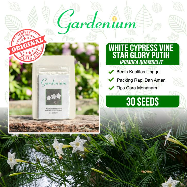 GARDENIUM Benih Bunga White Cypress Vine Star Glory Putih Ipomoea Quamoclit