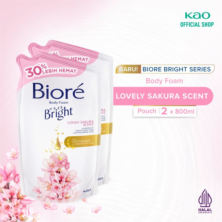 Biore Bright Sabun Mandi Cair Pencerah Kulit Lovely Sakura Hyaluronic Acid Refill 800 Ml Twin Pack - Sabun Cair Body Was