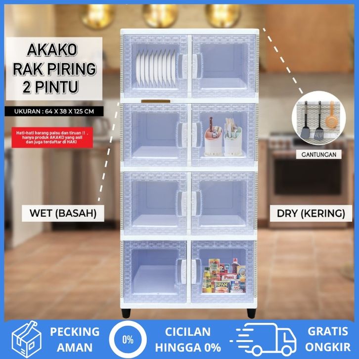 AKAKO - LEMARI RAK PIRING PLASTIK 2 PINTU SUSUN 2 3 DAN 4/KODE RPS-2P RAK DAPUR RAK PIRING RAK SERBAGUNA GRATIS ONGKIR