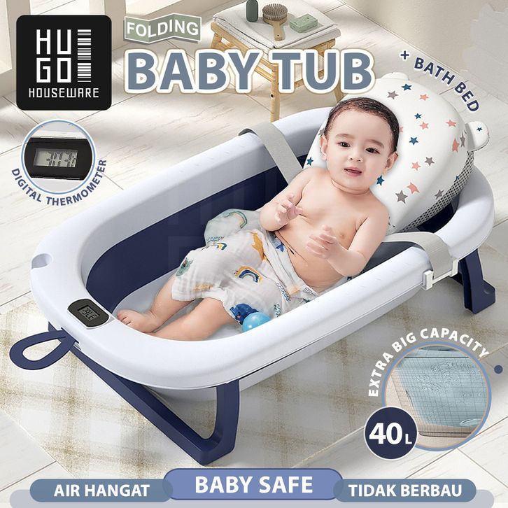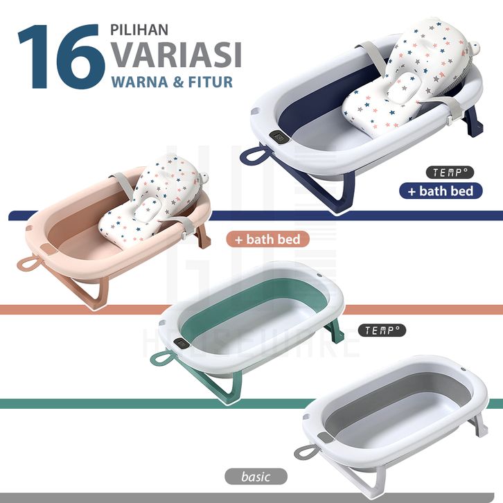 Bak Mandi Bayi Lipat dengan Pengukur Suhu dan Bantal Mandi Tempat Mandi Bayi Portable