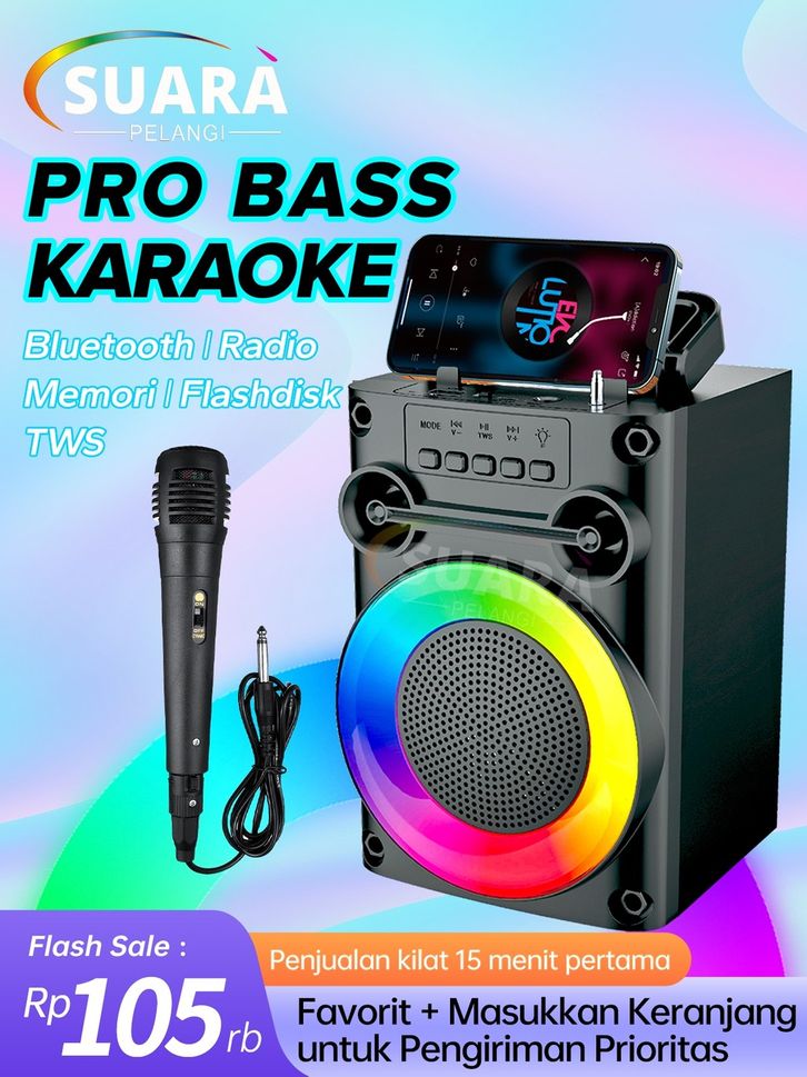【Pro Bass】Speaker Bluetooth Karaoke Protable Super Bass Polytron Besar Original Mini Wireless Musik Box Full Bass Salon