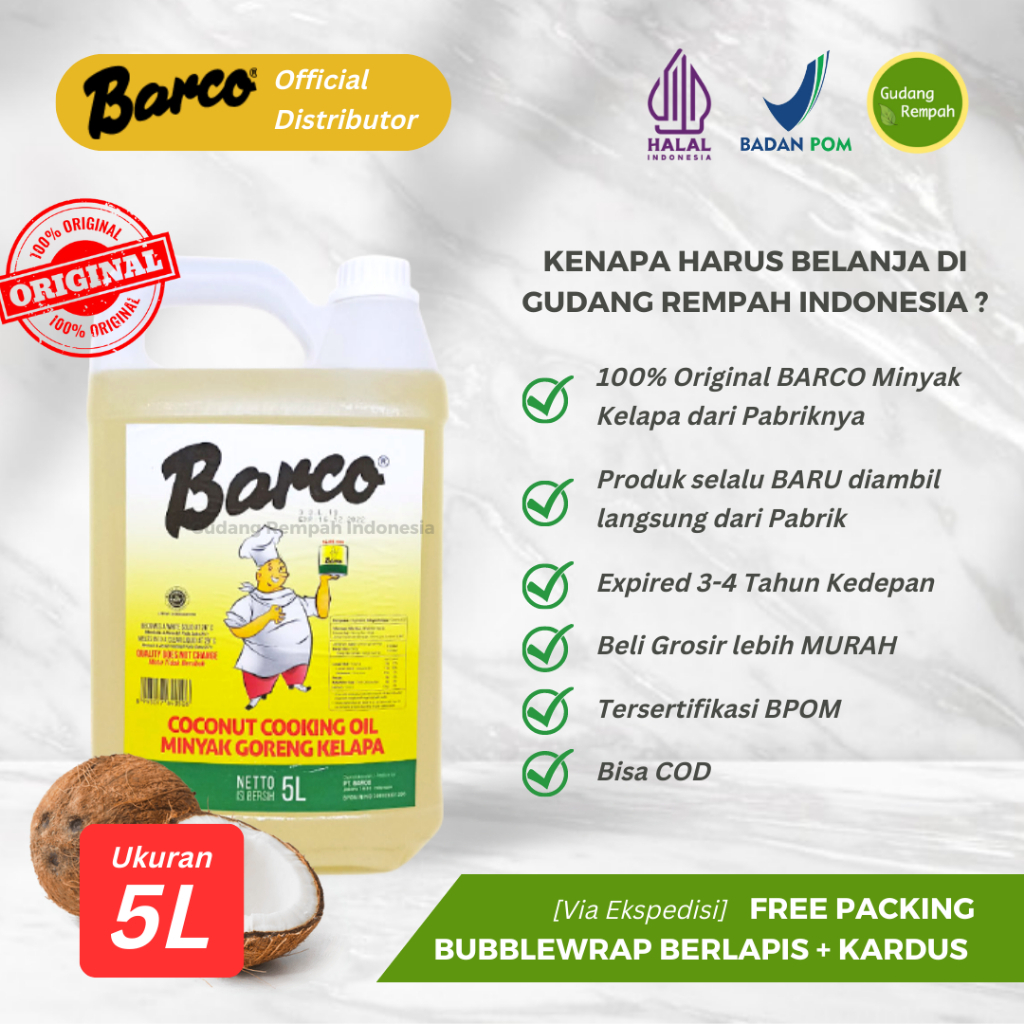 [PROMO 11.11] Barco 5 Liter - Minyak Kelapa Goreng/ Sehat Anti Kolesterol/ Minyak Kelapa Goreng