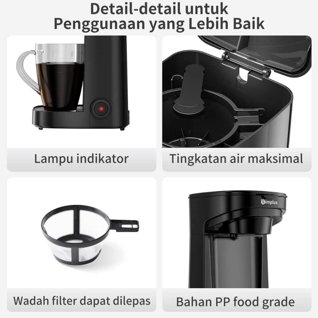 MESIN KOPI 250ML COFFEE MAKER FILTER SATU TOMBOL DUAL CUPS BAHAN KOKOH MULTIFUNGSI UNTUK SEDUH KOPI DAN TEH TERLARIS