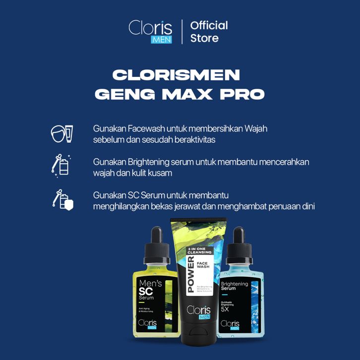 PAKET SKINCARE PRIA CLORISMEN GENG MAX PRO MENCERAHKAN & ANTI JERAWAT
