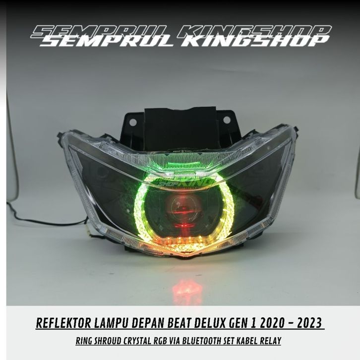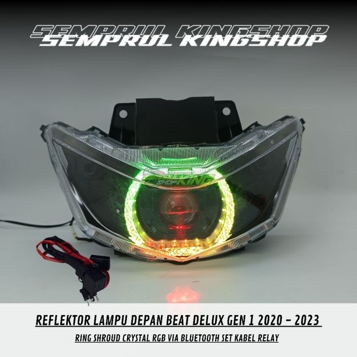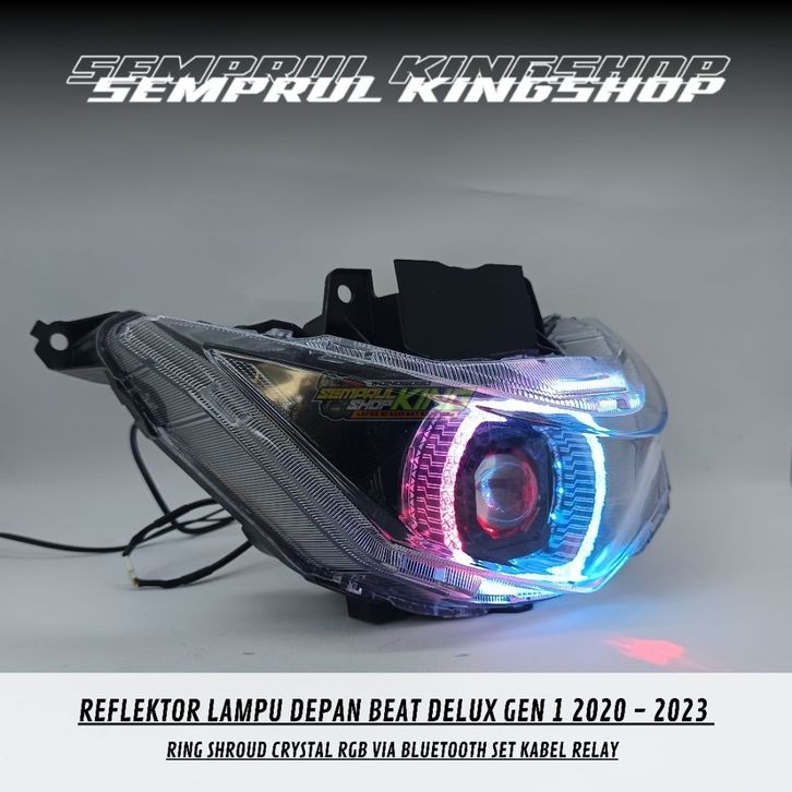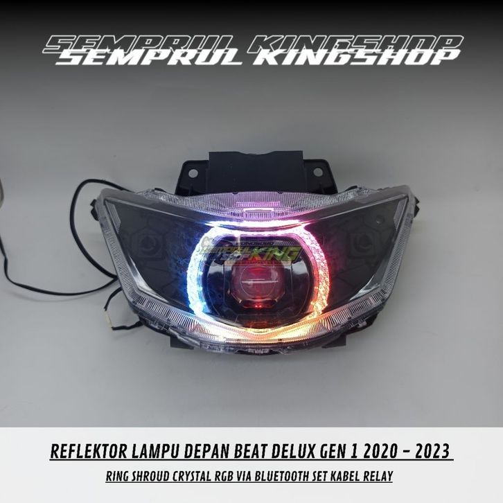 Lampu Depan Beat Deluxe Gen 1 Set Biled Ring Shroud Crystal RGB Setting Via Hp Komplit Kabel Relay