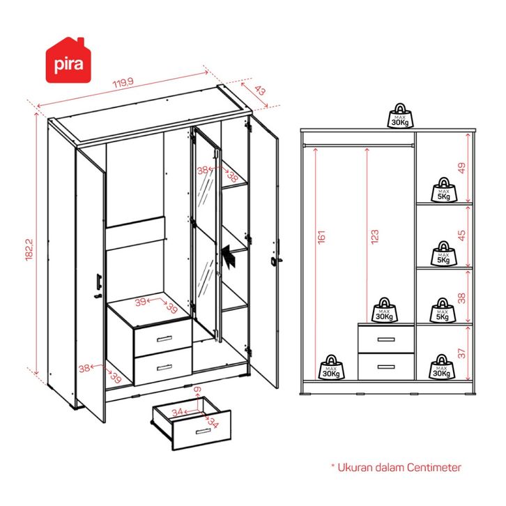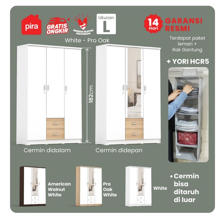 Pira Metropolis OX - Asta 3PL Lemari Pakaian 3 Pintu / Lemari Pakaian / Lemari Baju / Lemari Kayu / Lemari Kaca / Sekat