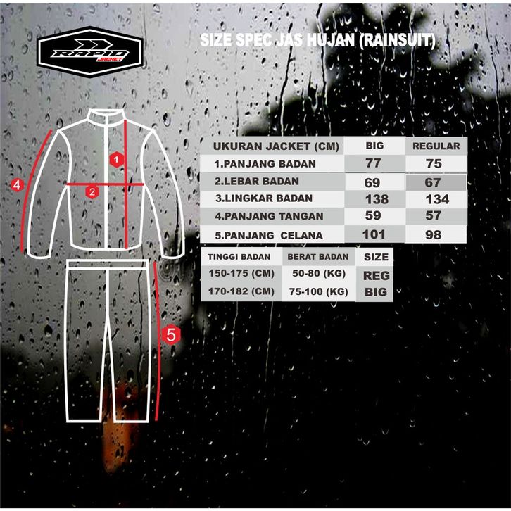 JAS HUJAN PRIA WANITA FULL WATERPROOF SEALER RAPID STORM setelan celana dewasa