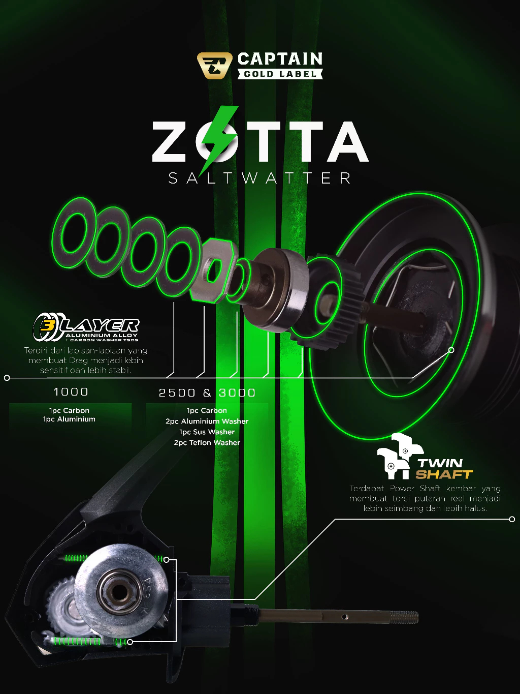 Reel Pancing, Reel Captain G0 LD LABEL ZOTTA 1000 2500 3000, SALTWATER Max Drag 6, 6, 10kg