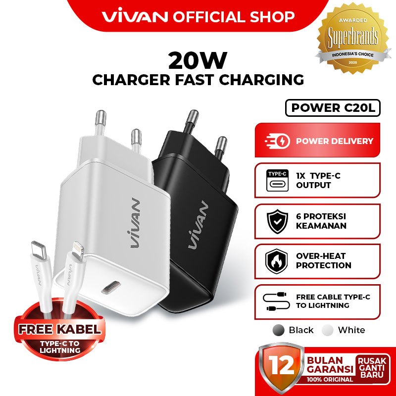 MAXIMOFF MEDIA VIVAN C20 POWER Mini Charger Adaptor Kepala Charger for iPhone 17 16 15 14 13 12 11 Type C
