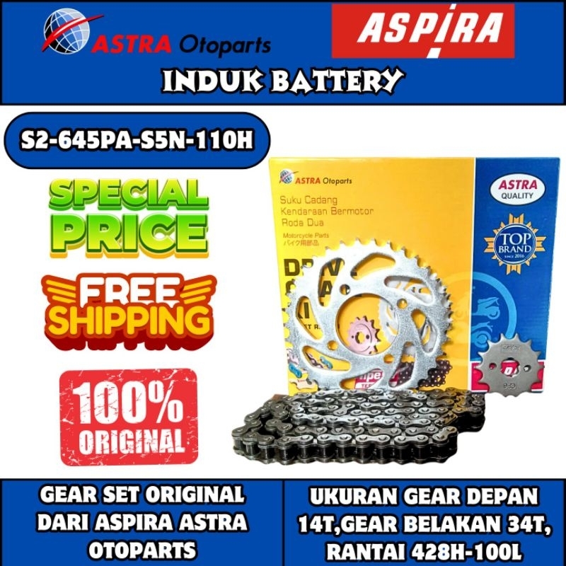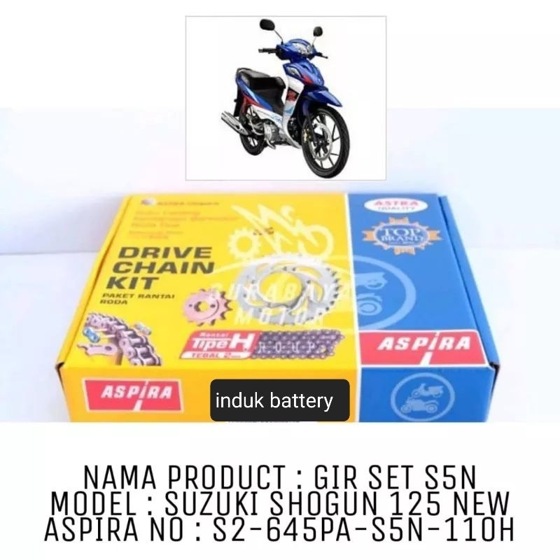 GIR SET SHOGUN 125 R NEW ASPIRA ORI 1 SET DEPAN BELAKANG PLUS RANTAI ( S2-645PA-S5N-110H ) Trans Otomotif|Racing|Sperpar