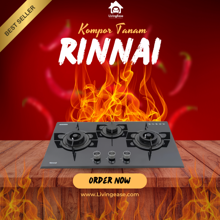 Rinnai RB-712N(S) Kompor Tanam 2 3 Tungku Model Baru Stainless Rinnai Modena Niko Sanex Progas Kompor Gas Tanam