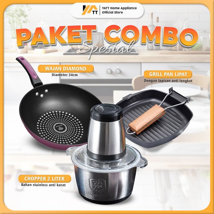 YATT KITCHENWARE!!Wajan Diamond 32 CM + Square Grill Pan 20 CM+Chopper 2L Penggiling Daging Bumbu