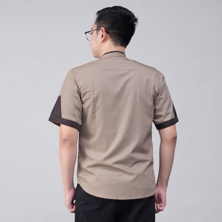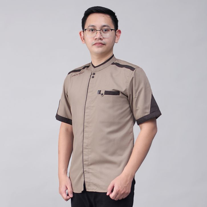 Baju Koko Pria Elrumi Lengan Pendek Motif Yisunsin Warna Cokelat