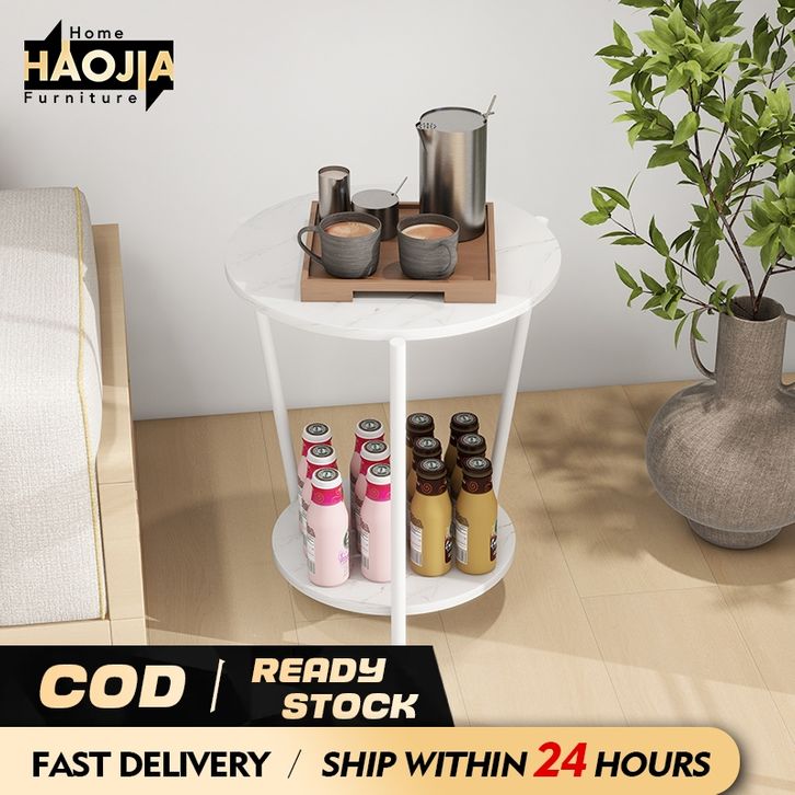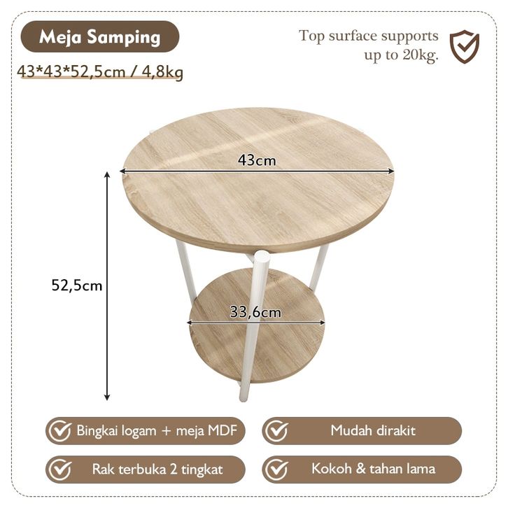 BEST SELLER 43CM Meja Kopi Bulat Meja Aesthetic Meja Kopi Gaya Nordic Penyimpanan 2 Tingkat/Meja Kopi Minimalis Bulat
