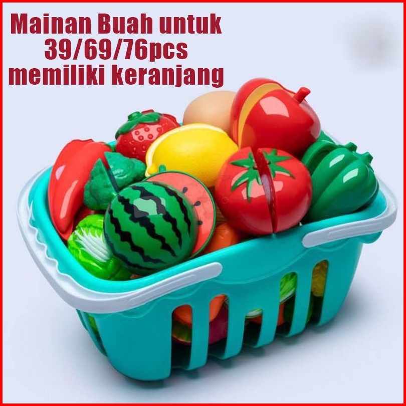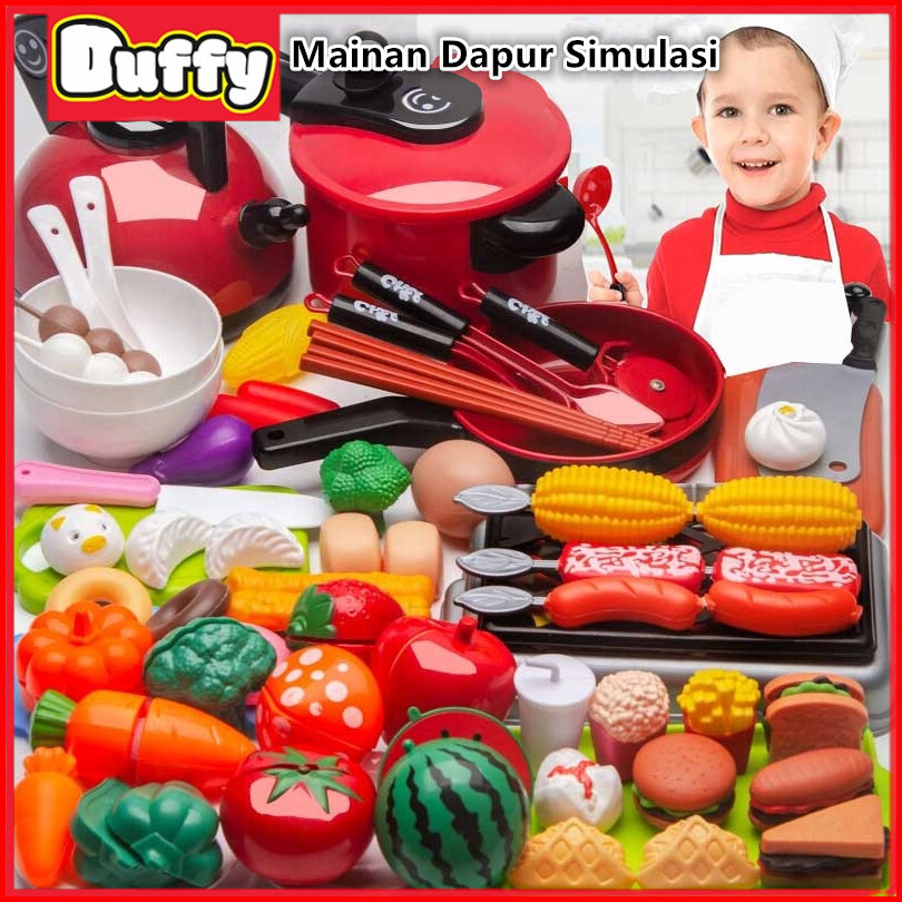 Duffy Toys 86pcs Mainan Dapur Simulasi Mainan Masakan Mainan Buah Potong Dapur Mainan Pendidikan Anak Memotong Sayuran M
