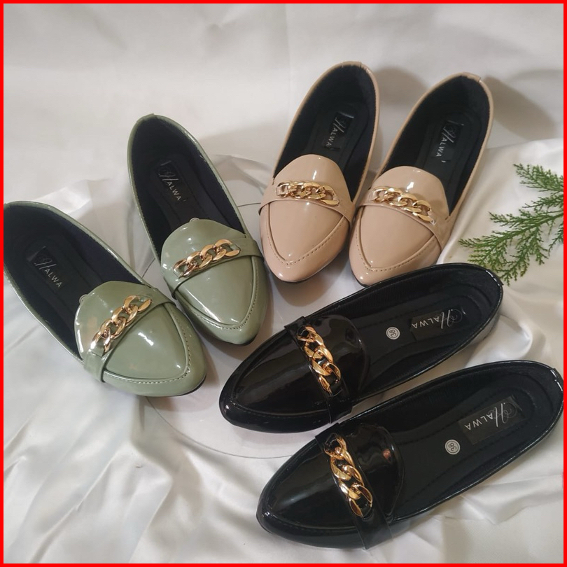 Halwa Flatshoes Sepatu Wanita Kekinian Variasi Rantai Flatshoes Wanita Terbaru