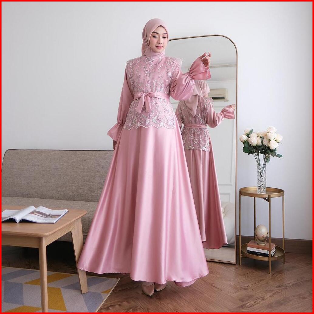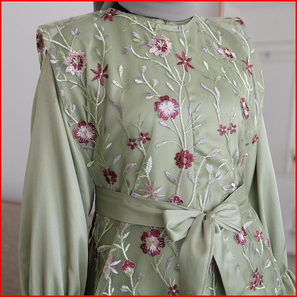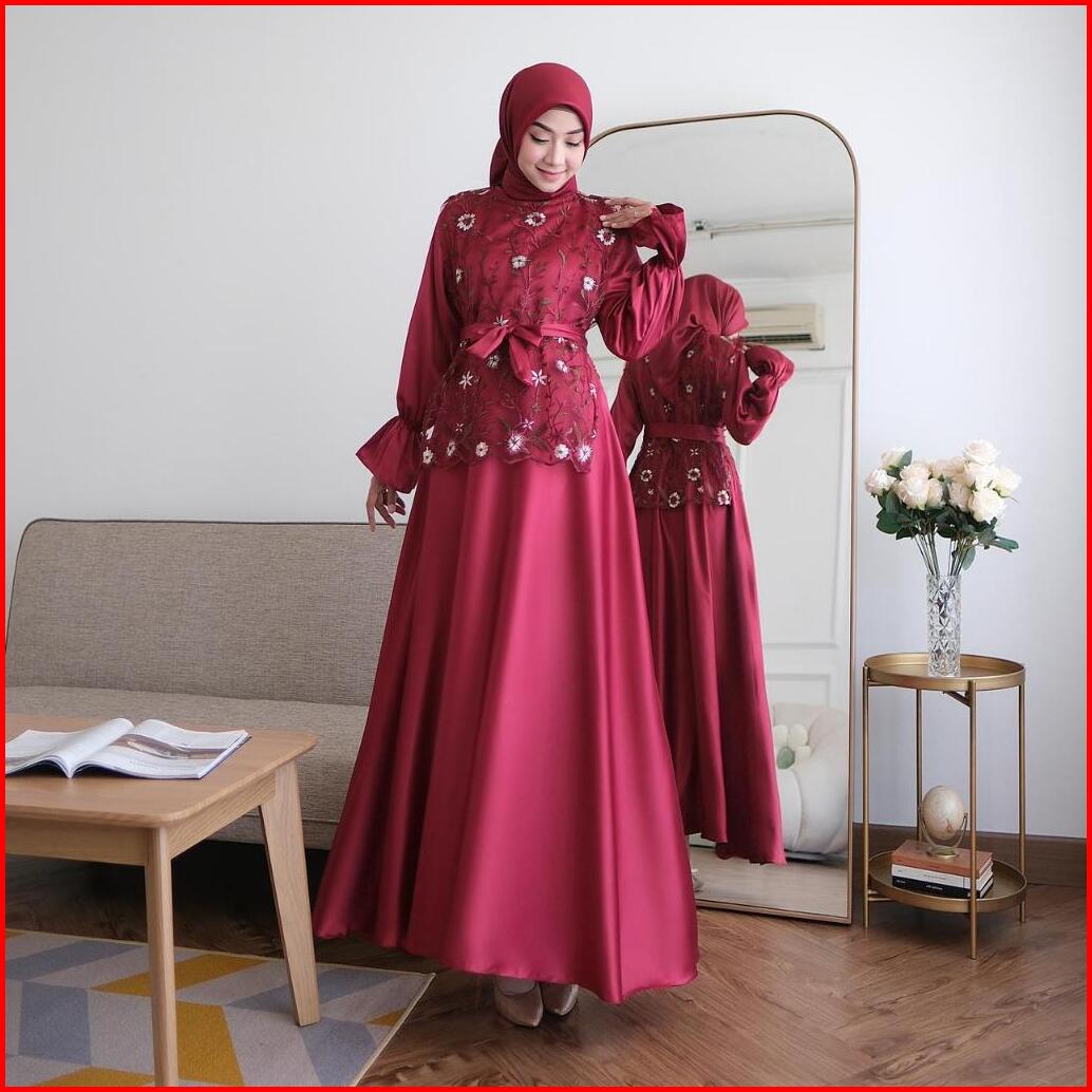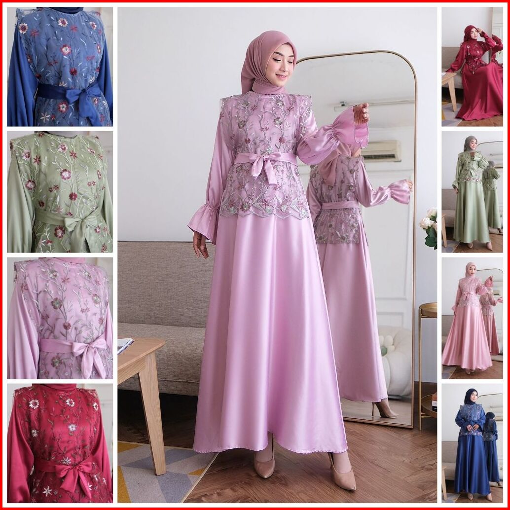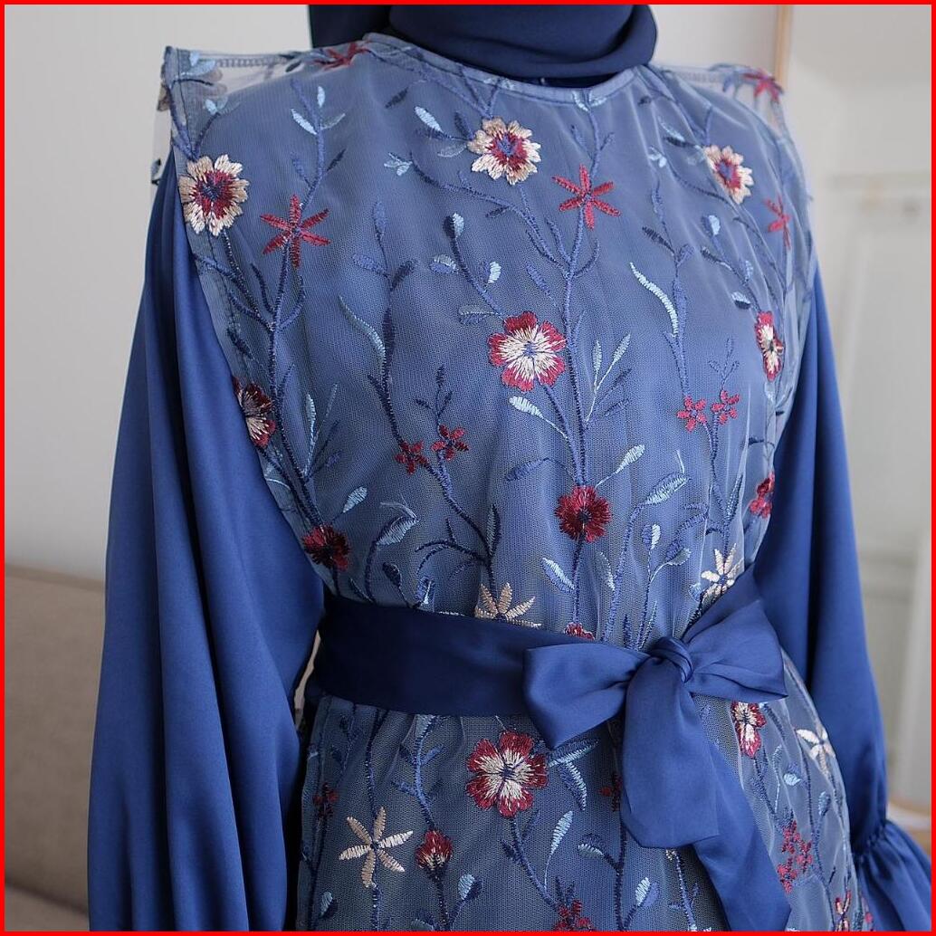 Zxc 2in1 Falerie Vest Gamis Outer Tile Garden Bordir Busui