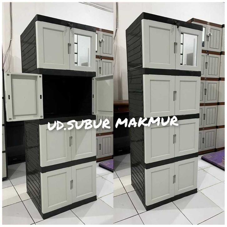 BEST SELEER (NEW MODEL) LEMARI PLASTIK / LEMARI PAKAIAN PLASTIK KACA SUSUN 4