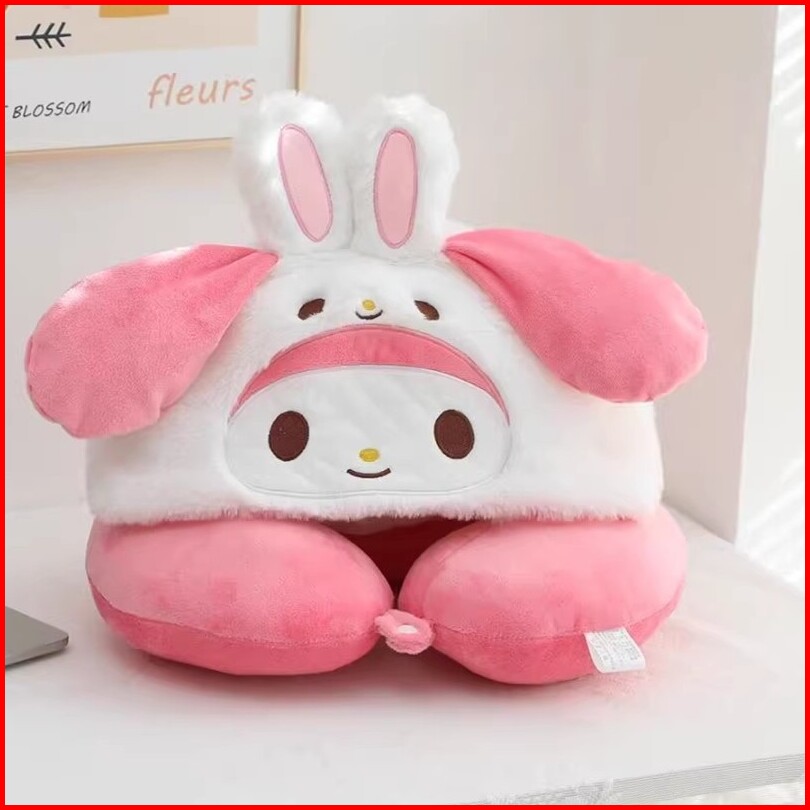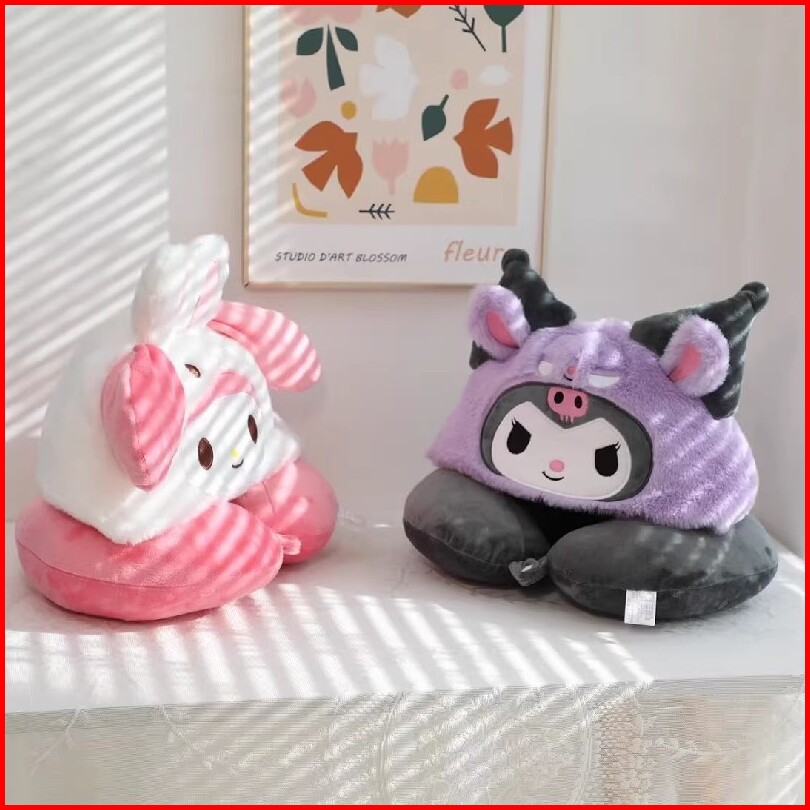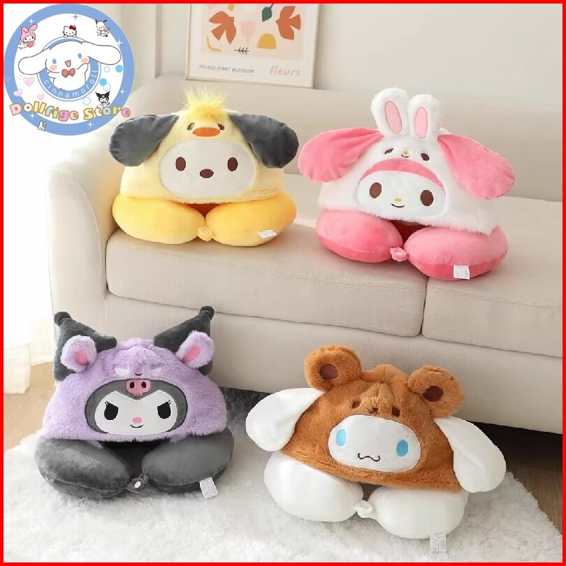 Bantal Leher Cartoon Sanrio Kuromi Pochacco Cinnamoroll My Melody Plush Hooded Kawaii New