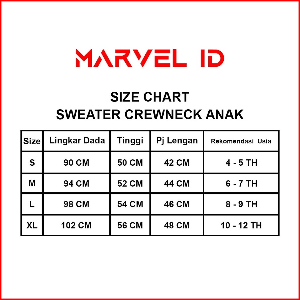 Marvelid Sweater Crewneck Polos Anak Laki-laki Perempuan Usia 5 - 12 Tahun