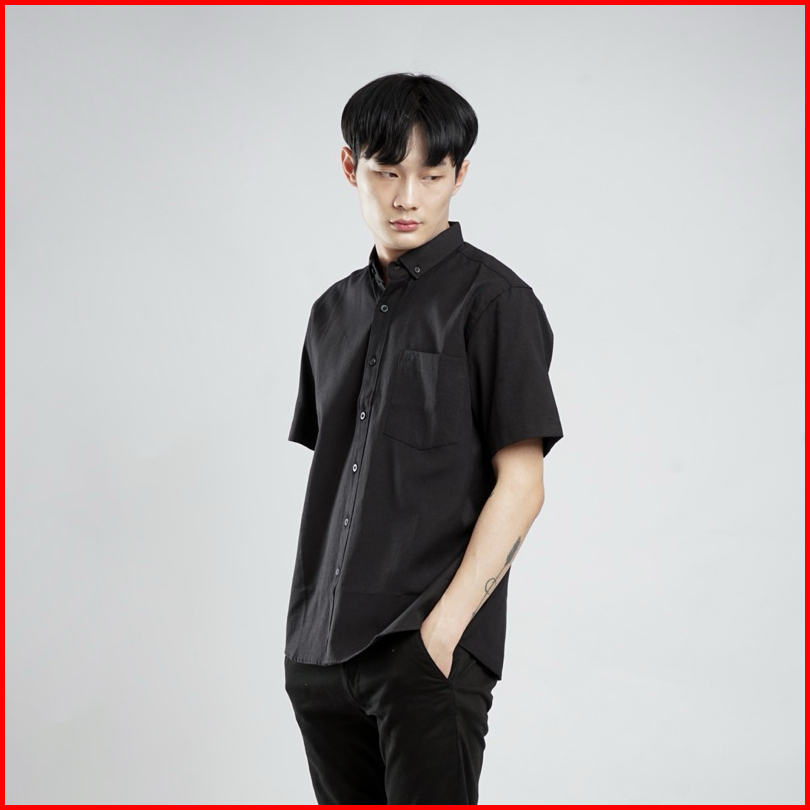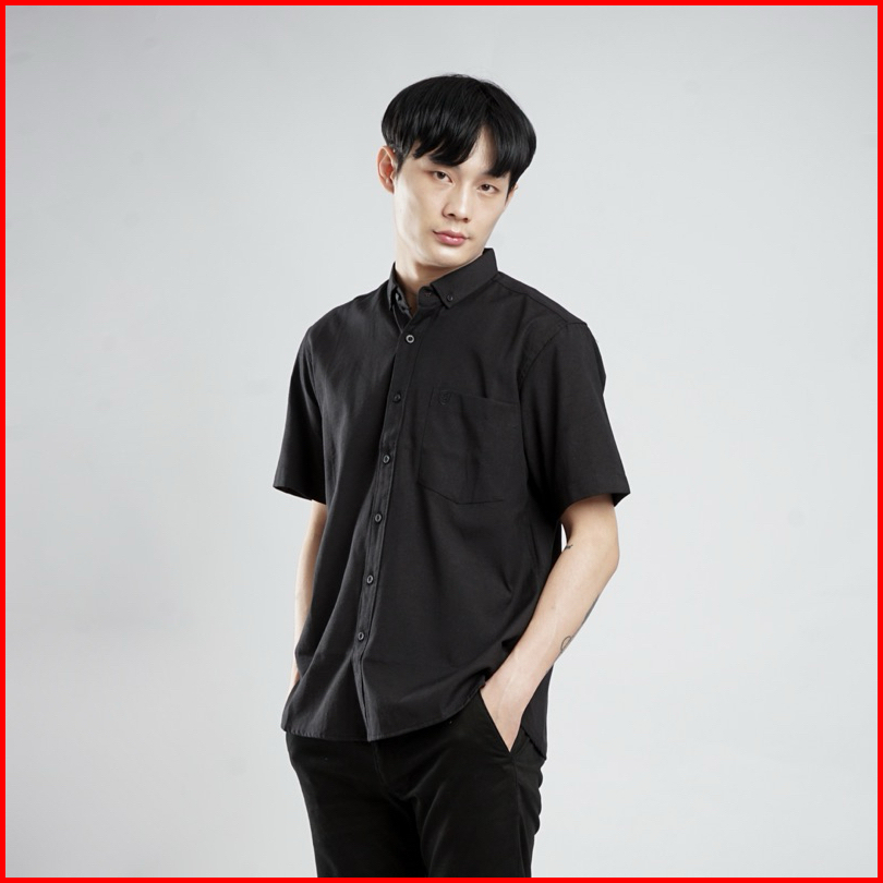Bossqu21 Kemeja Pria Polos Lengan Pendek 33207 Hitam Navy