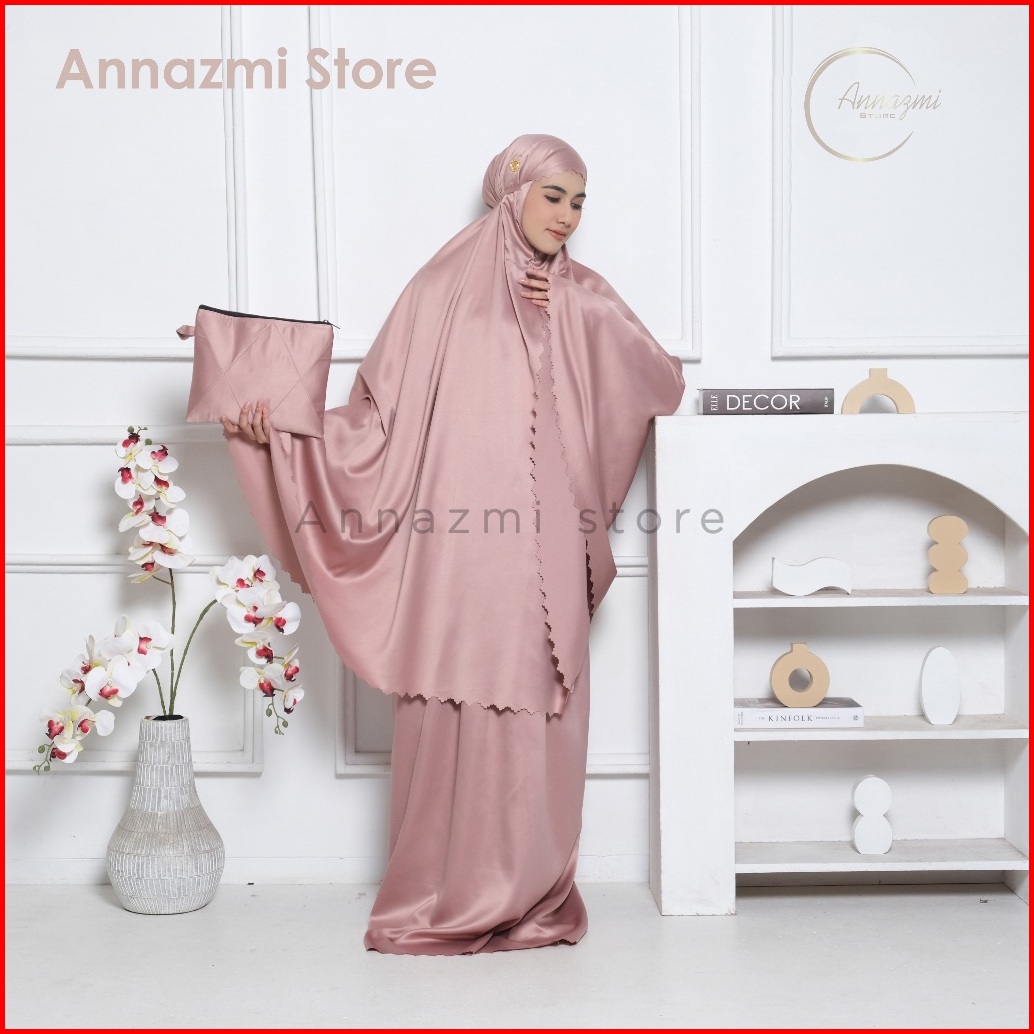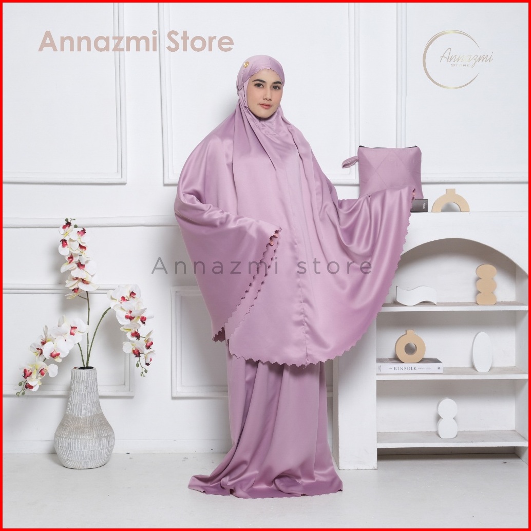 Annazmi - Mukena Dewasa Lasercut 2in1 Bros Resleting Satin Velvet Silk Premium