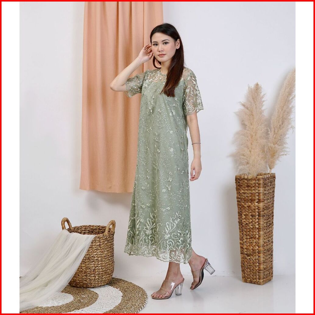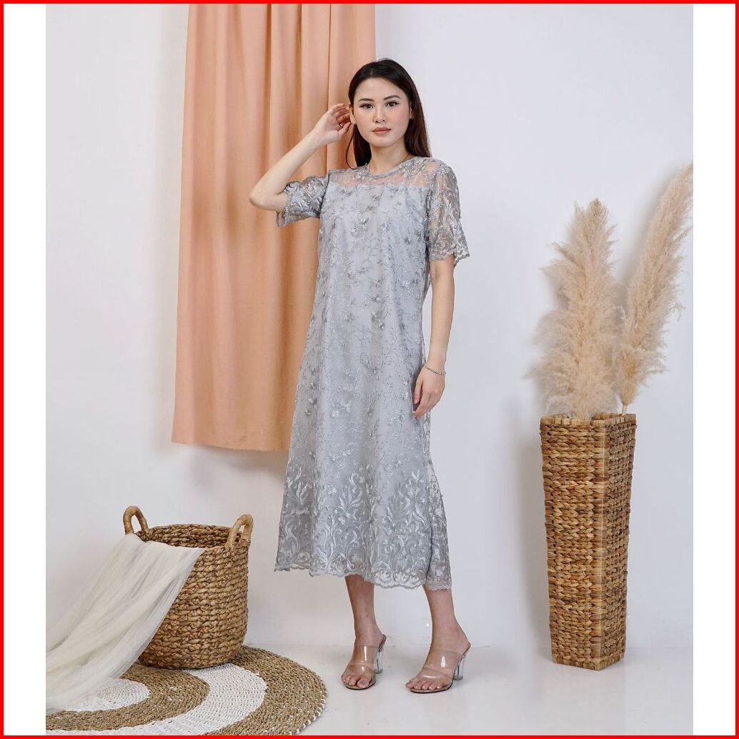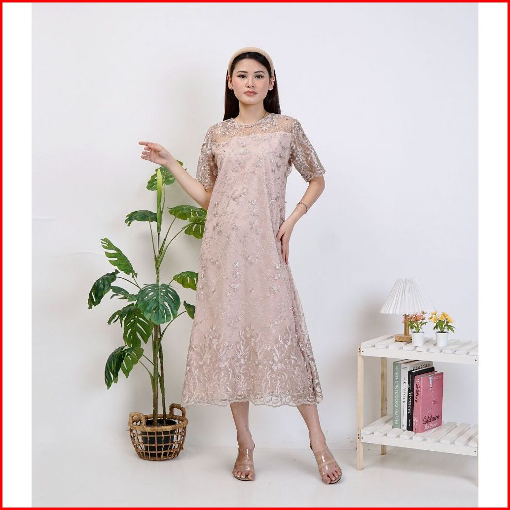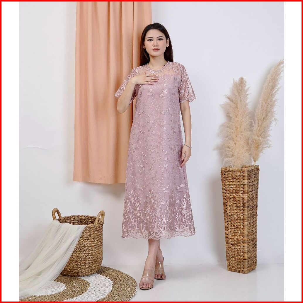 Pasti Realpict Diana Long Dress Brukat Tile Bordir Gliter Mutiara Brokat Tulle Dres Pesta Murah