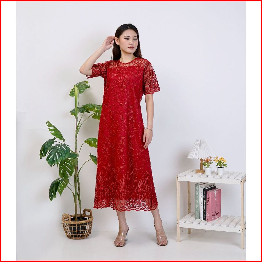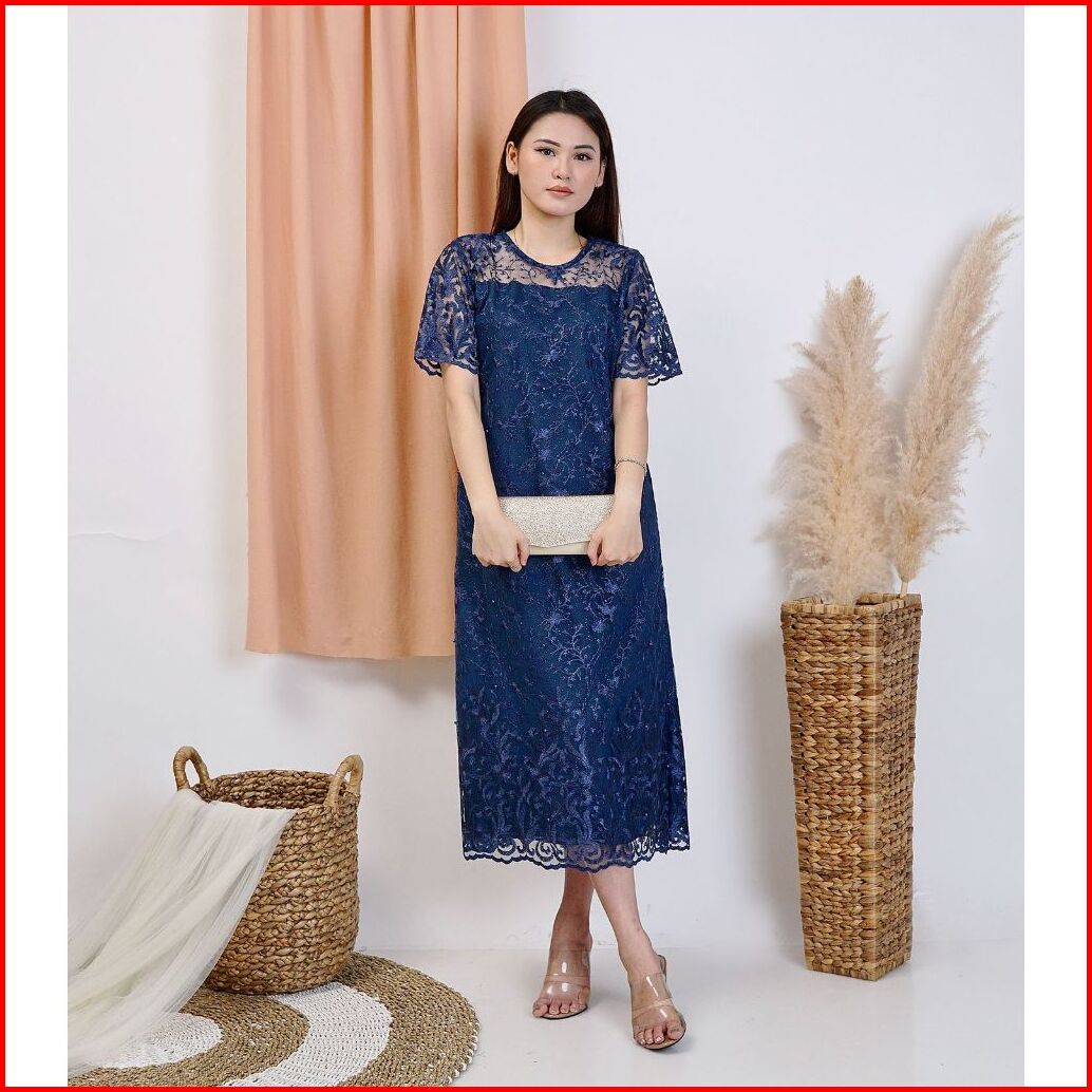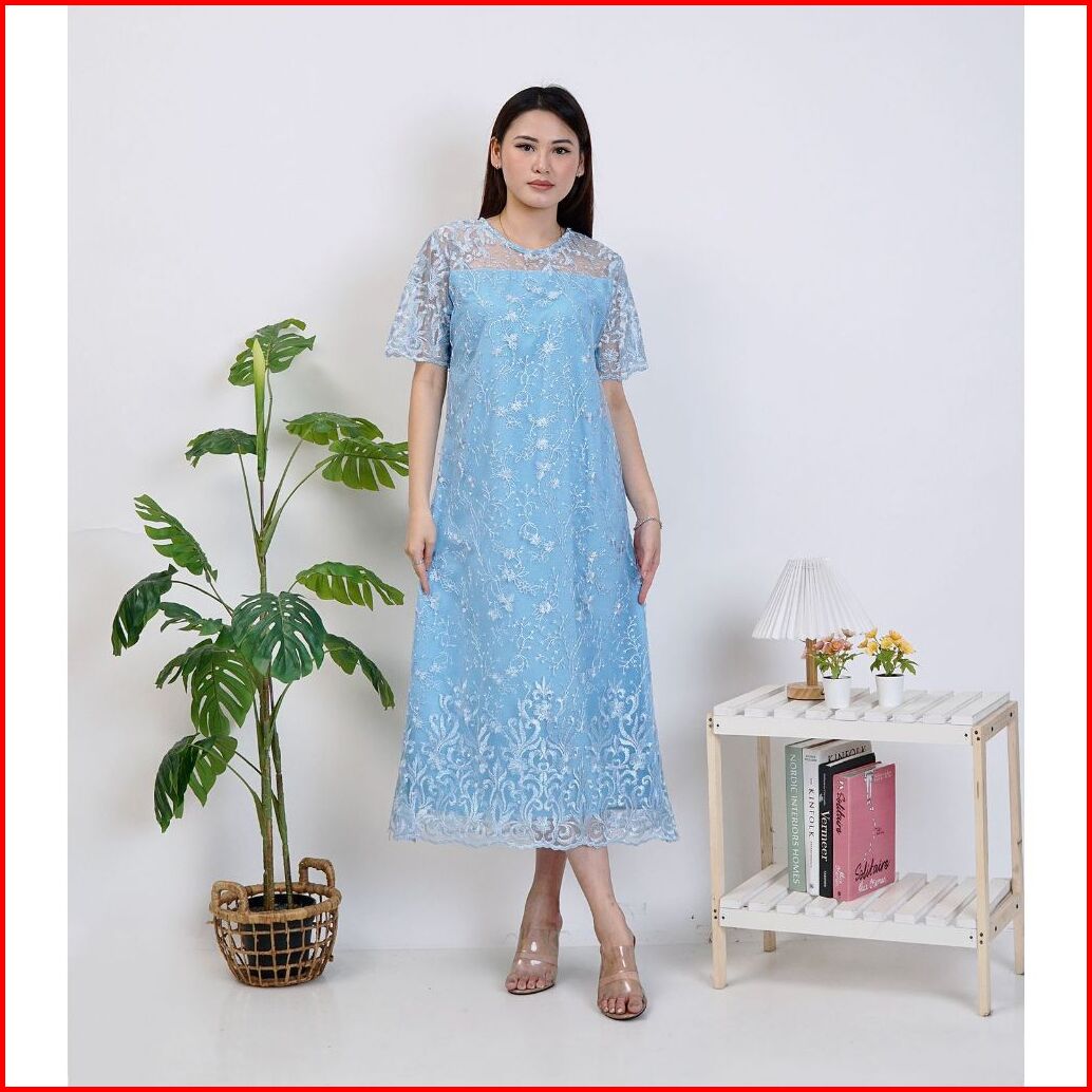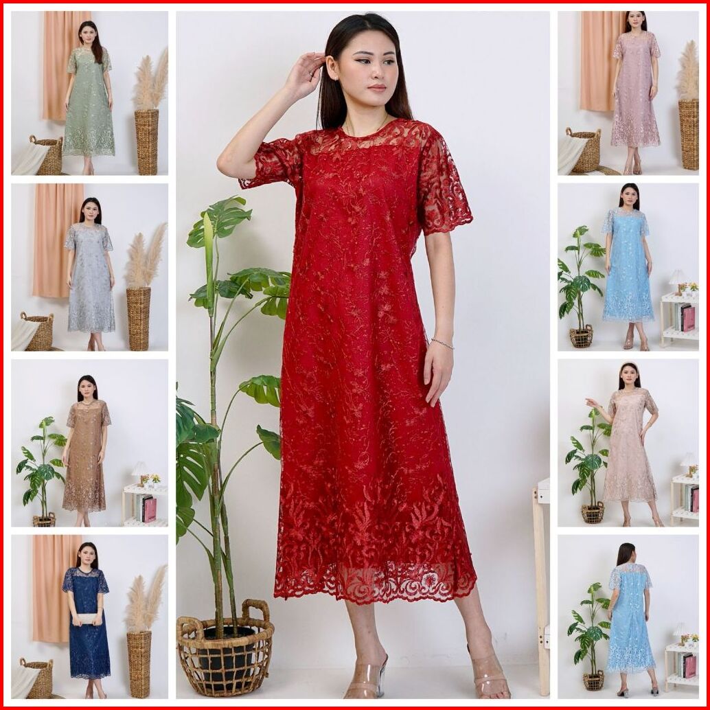 Pasti Realpict Diana Long Dress Brukat Tile Bordir Gliter Mutiara Brokat Tulle Dres Pesta Murah