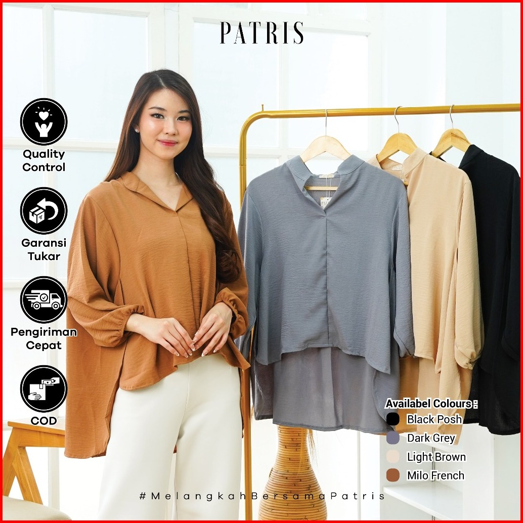 Patris Gauri Atasan Blouse Crinkle Lengan Panjang Blouse Wanita Crinkle Wanita Blouse Lengan Panjang Daily Wear