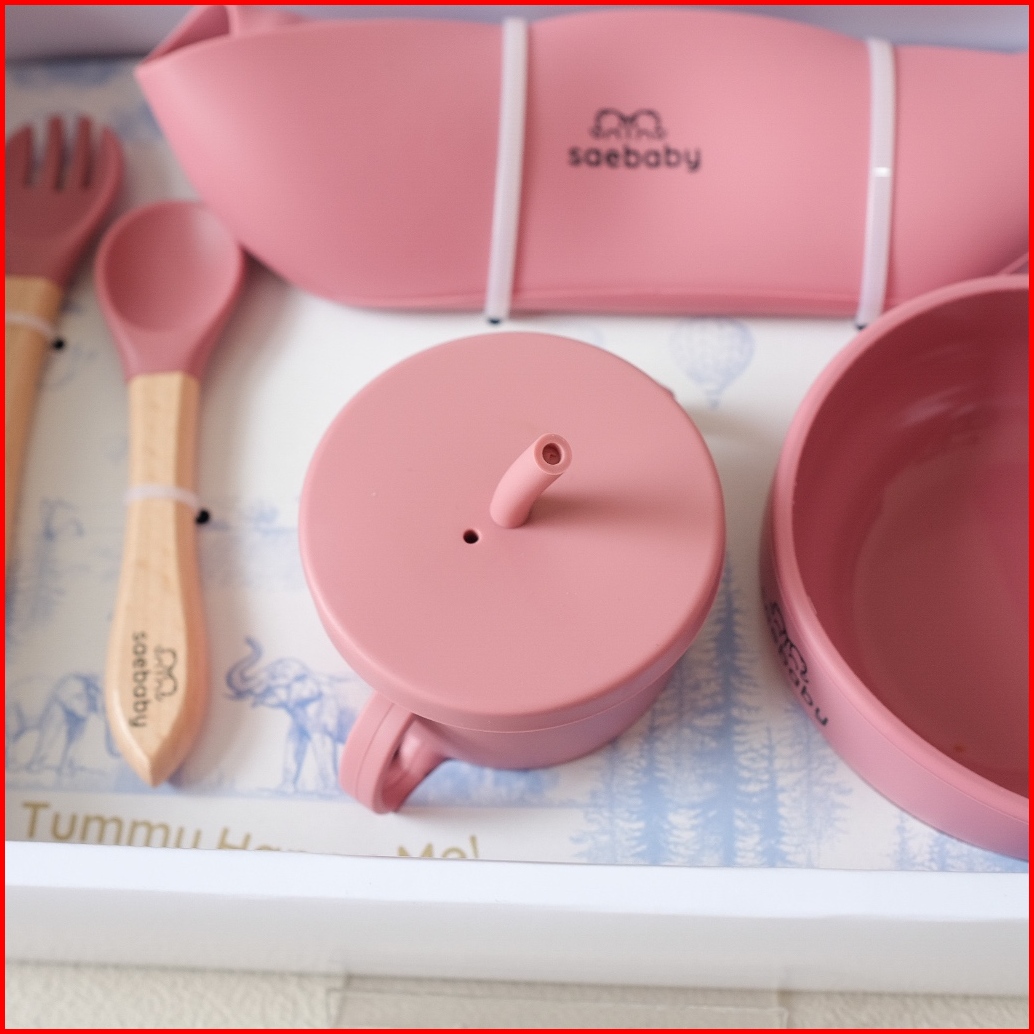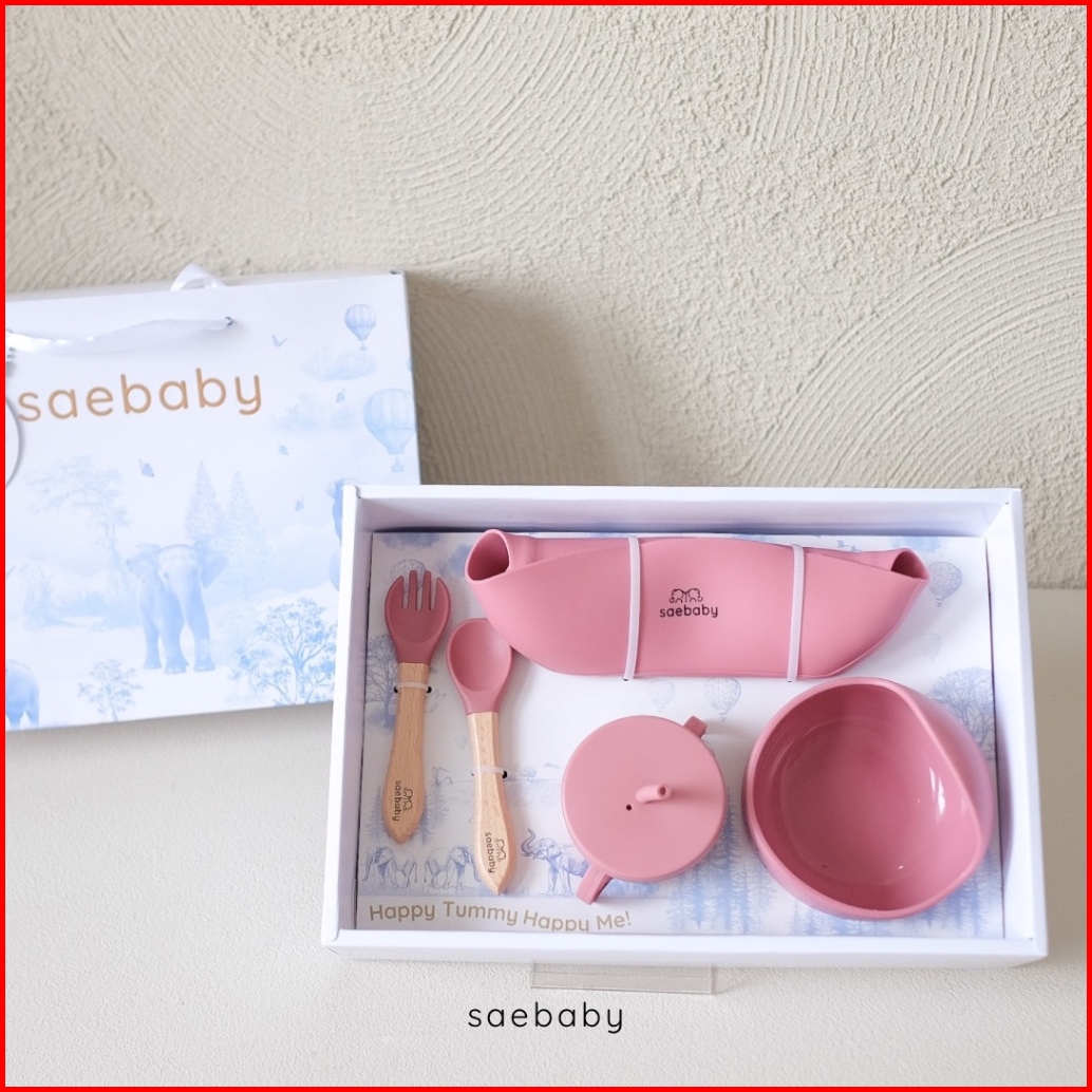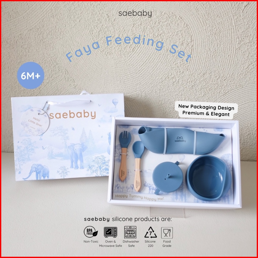 Sae Faya Set 5 Pcs Baby Feeding Silicone Set Hampers Bayi Peralatan Makan Bayi Hampers Lahiran Alat Makan Bayi