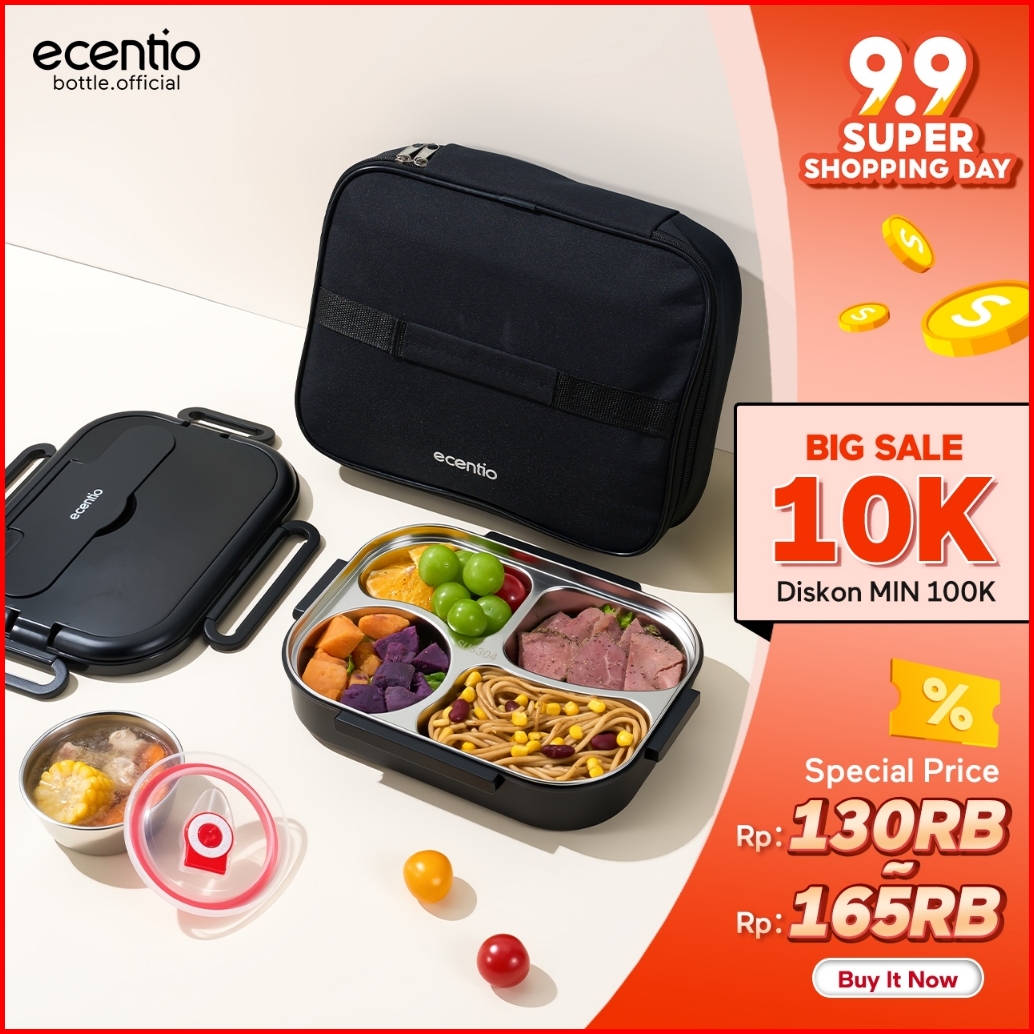 Ecentio Lunch Box Stainless Kotak Makan 4 Sekat Tahan Panas Dan Anti Tumpah Tempat Makan