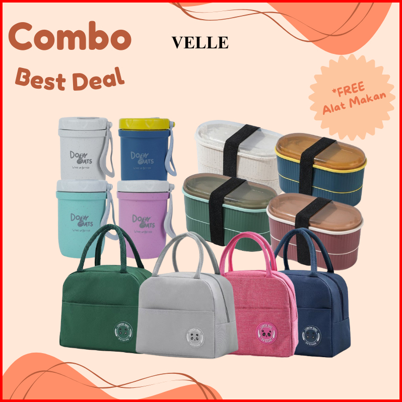 Velle Combo Best Deal Kotak Bekal Set 3 In 1 Paket Hemat Paket Bekal Sekolah Lunch Bag Anak Lengkap Paket Bekal Murah Pa