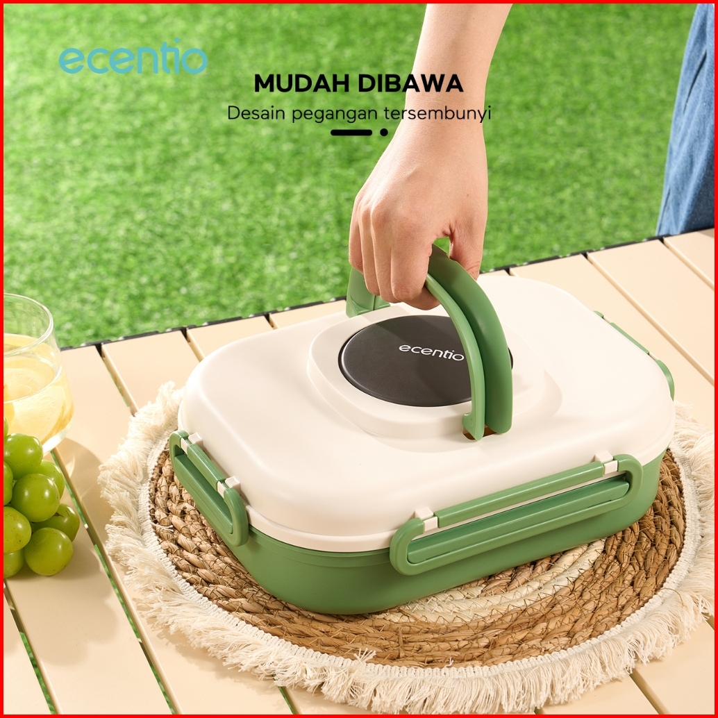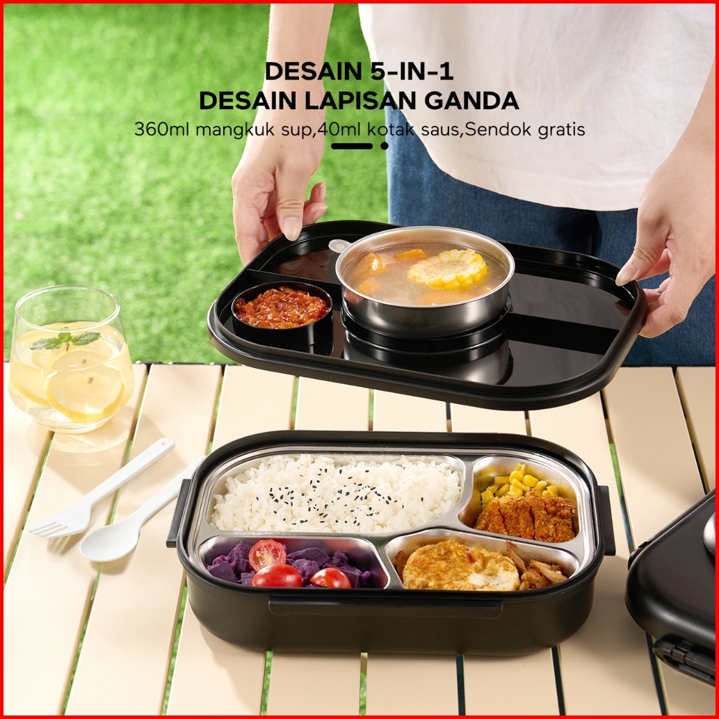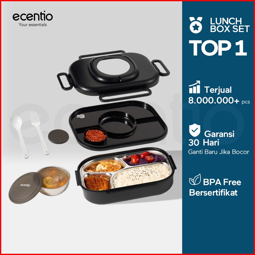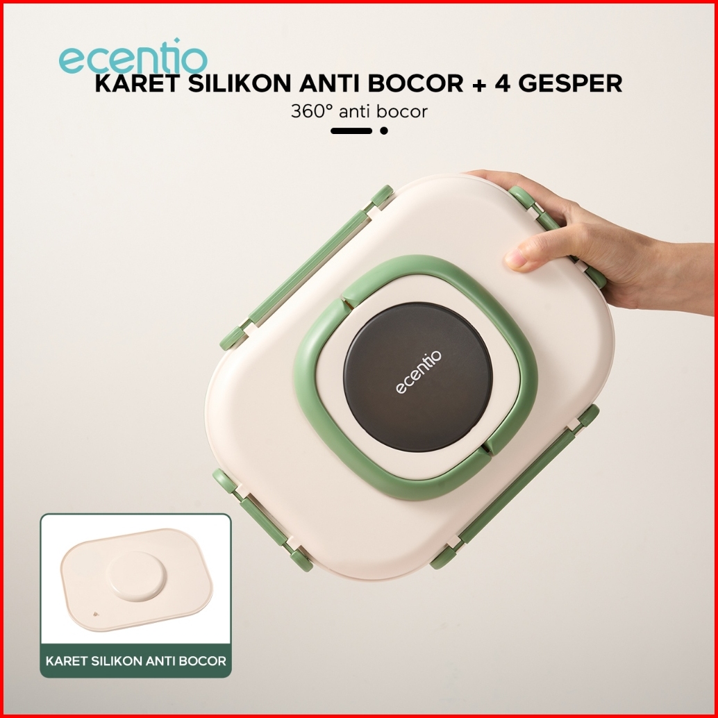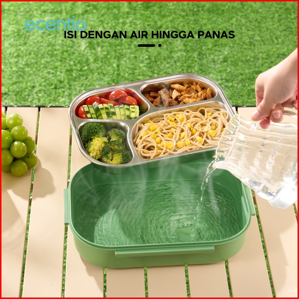 Ecentio 4 Sekat Kotak Makan Set 1100ml Anti Tumpah Lunch Box Set Stainless Sendok Free Tempat Sup