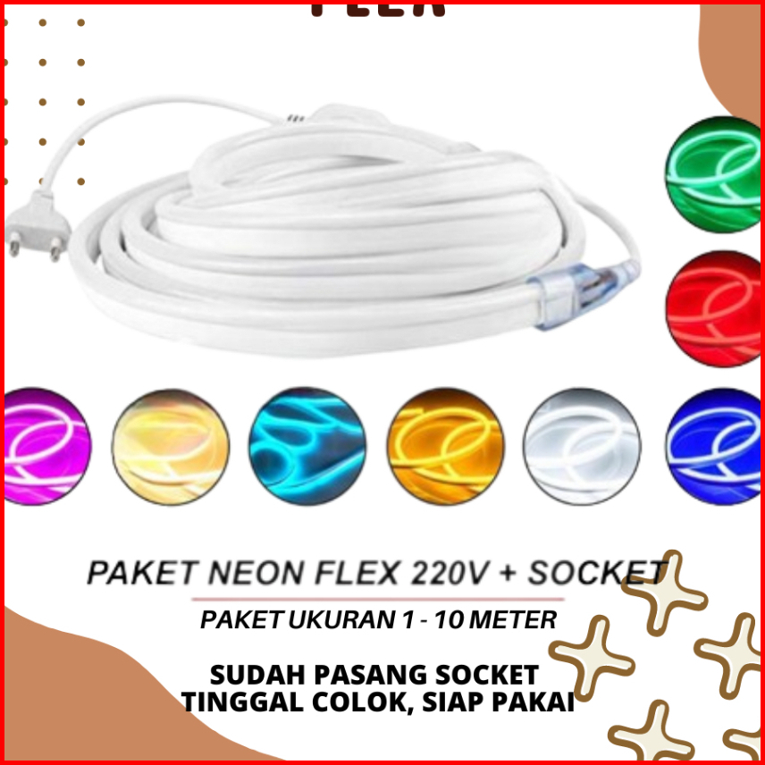 Paket Lampu Led Neon Flex 220v 1m-5m Lengkap Tinggal Colok Waterproof