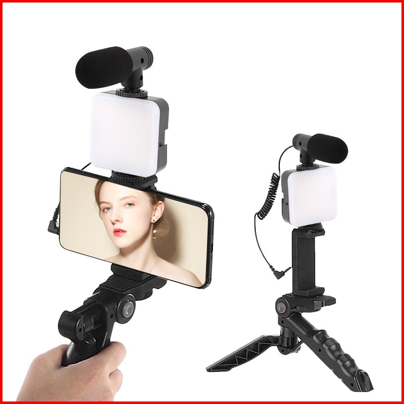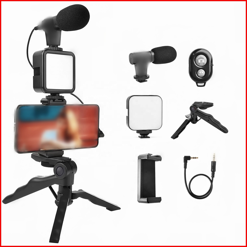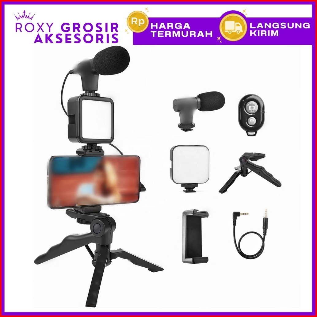 Tripod Vlog Set 5in1 Paket Tripod Vlog Led Light Microphone Remote Shutter Paket Vlog Lengkap