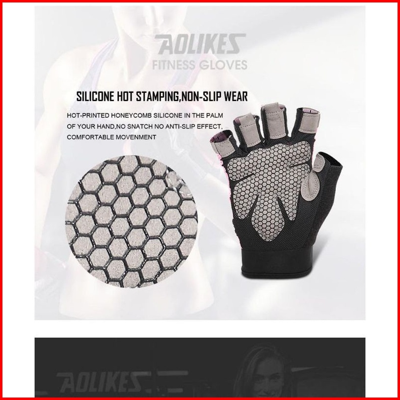 Non-slip Sarung Tangan Gym Wrist Wraps Fitness Olahraga Aolikes Gloves 1 Pasang