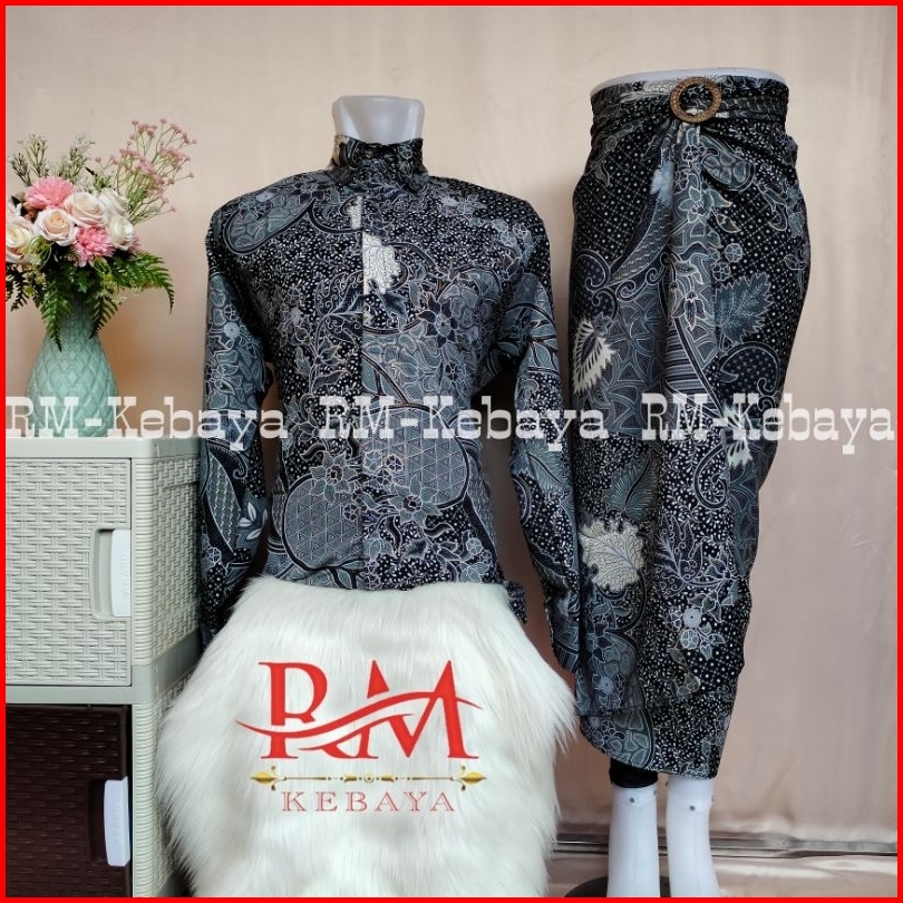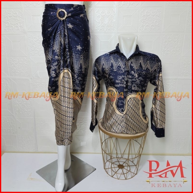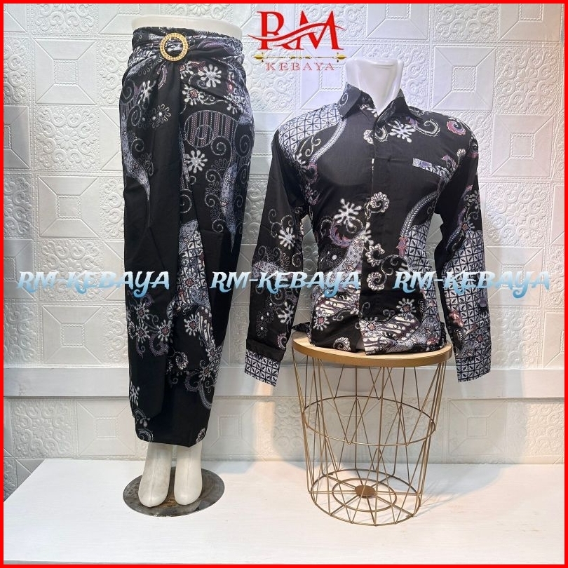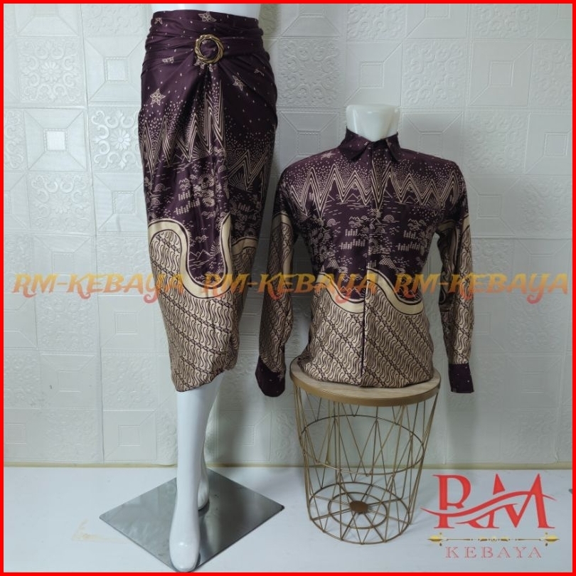 Baju Kemeja Batik Pria Couple Rok Lilit Batik Wanita Set Pakaian Tradisional