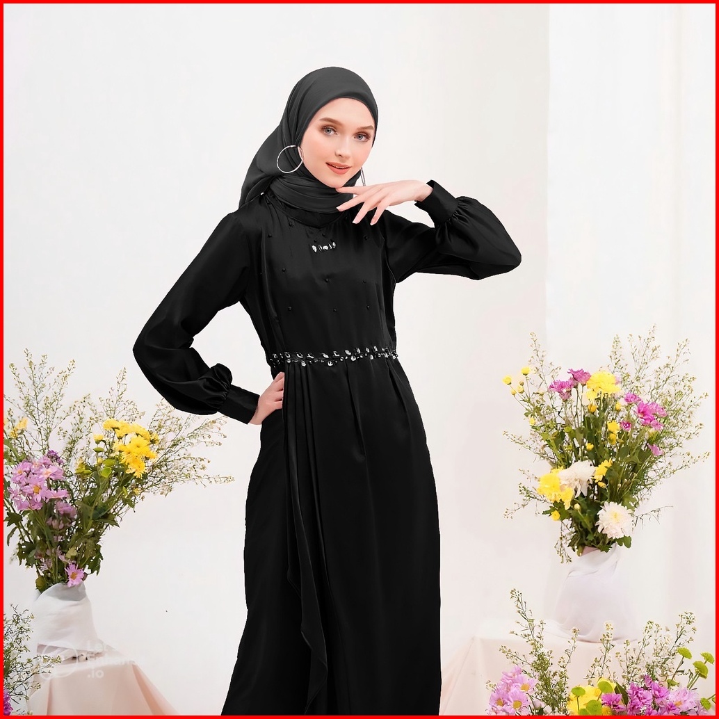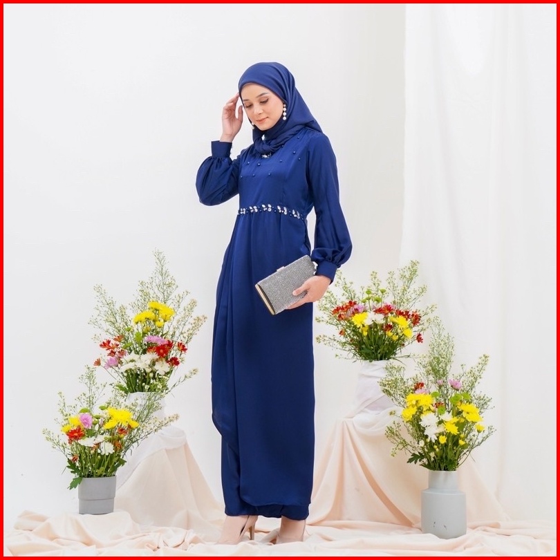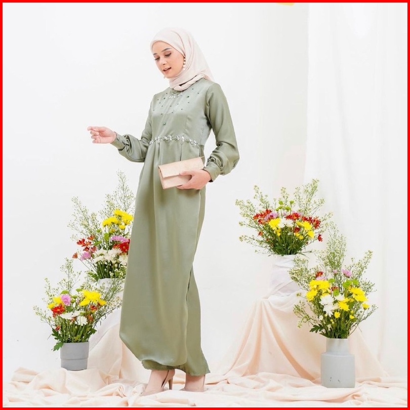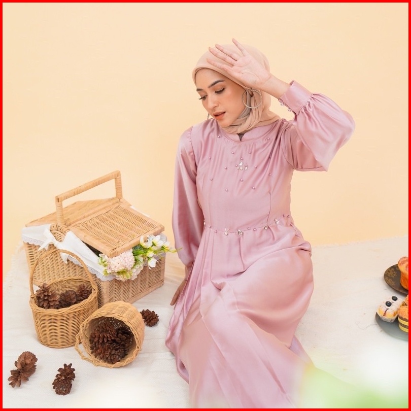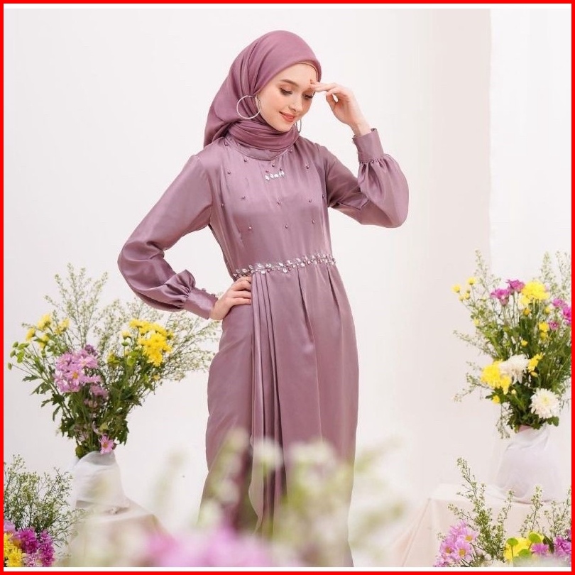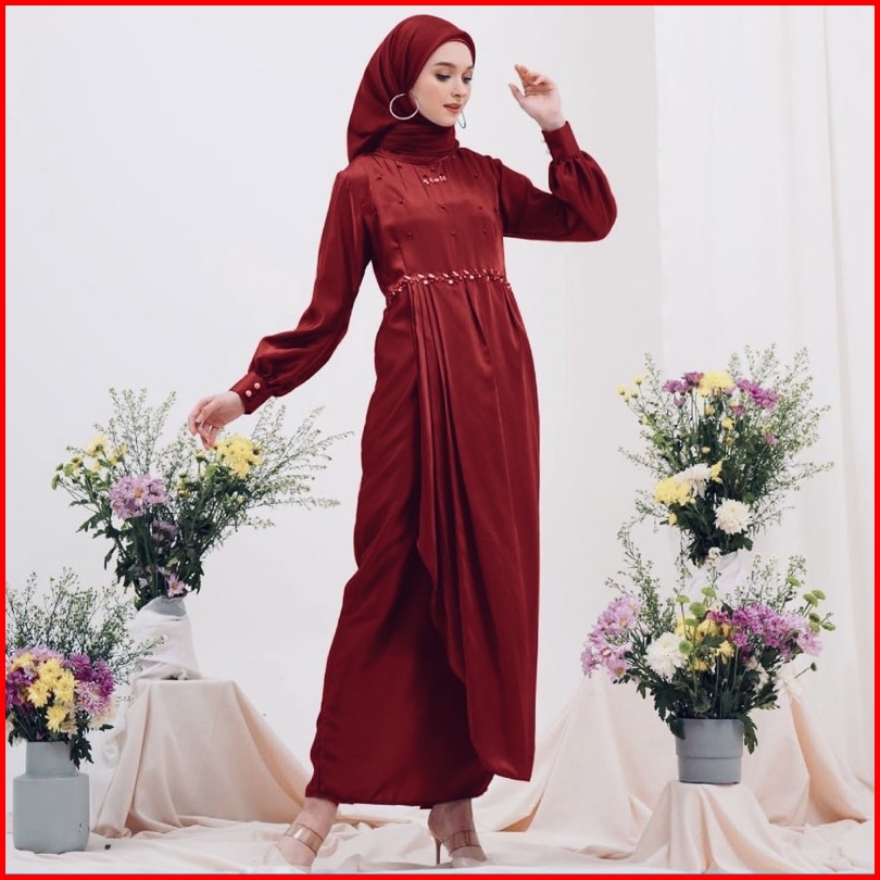 Gamis Pesta Kondangan Keysha Silk Dress Muslim Korean Style Satin Maxmara Gaun Model Terbaru Polos Payet