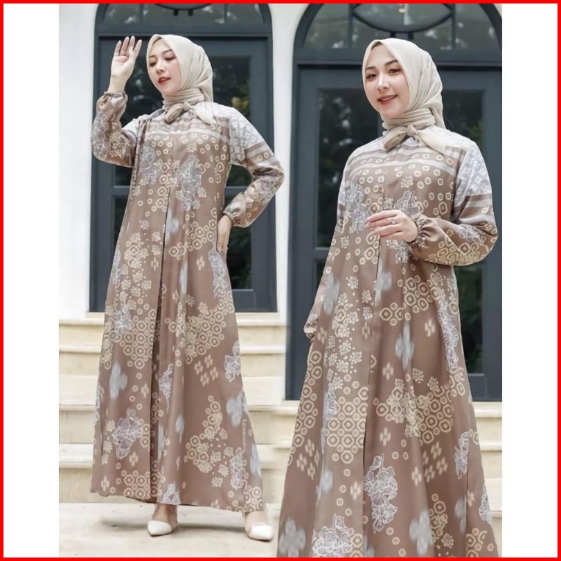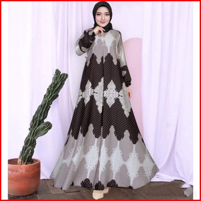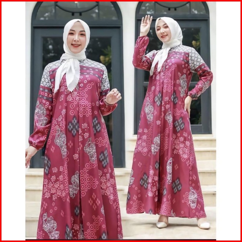 Gamis Wanita Terbaru Promo Jumbo Gamis Silk Print Gamis Pesta Lebaran Dress Lebaran Aruna Busui