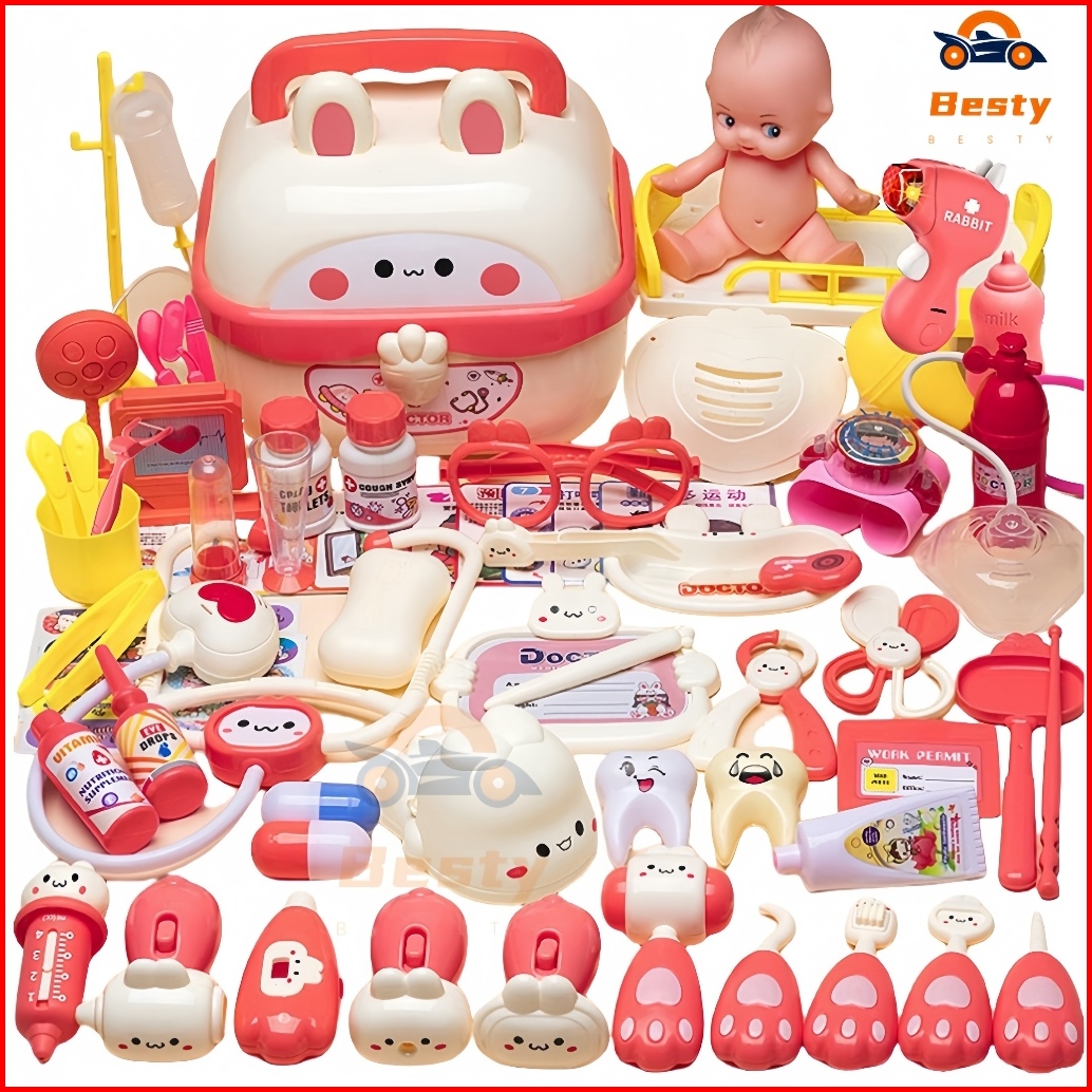 Besty 74pcs Mainan Anak Koper Dokter Mainan Anak Set Mainan Anak Set Dokter Mainan Edukasi Lengkap Dengan Boneka Bayi Da