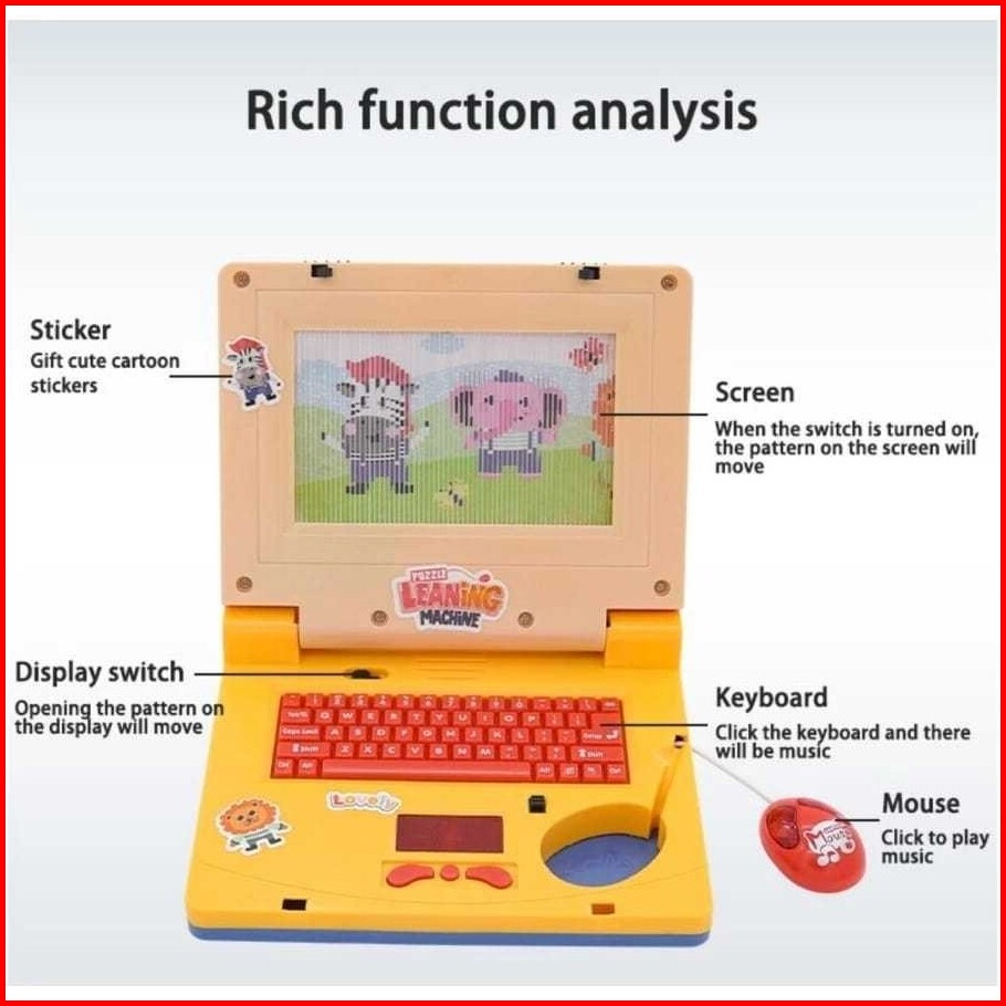 Mainan Laptop Mainan Edukasi Notebook Anak-anak Versi Bahasa Lnggris Dari Lampu Notebook Simulasi Komputer Kartun Musik