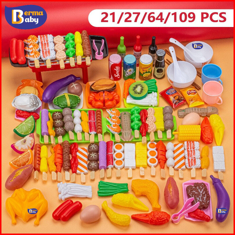 Berma Baby 21 27 64 109 Pcs Mainan Anak Masak Masakan Grill Bbq Sate Dan Panggangan Barbekyu