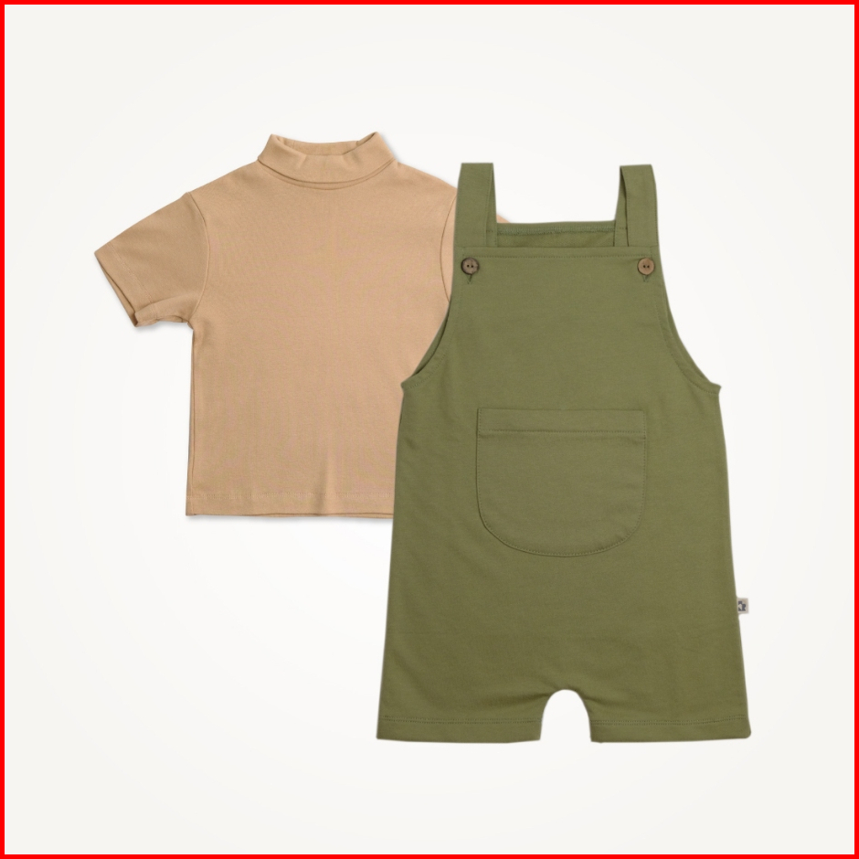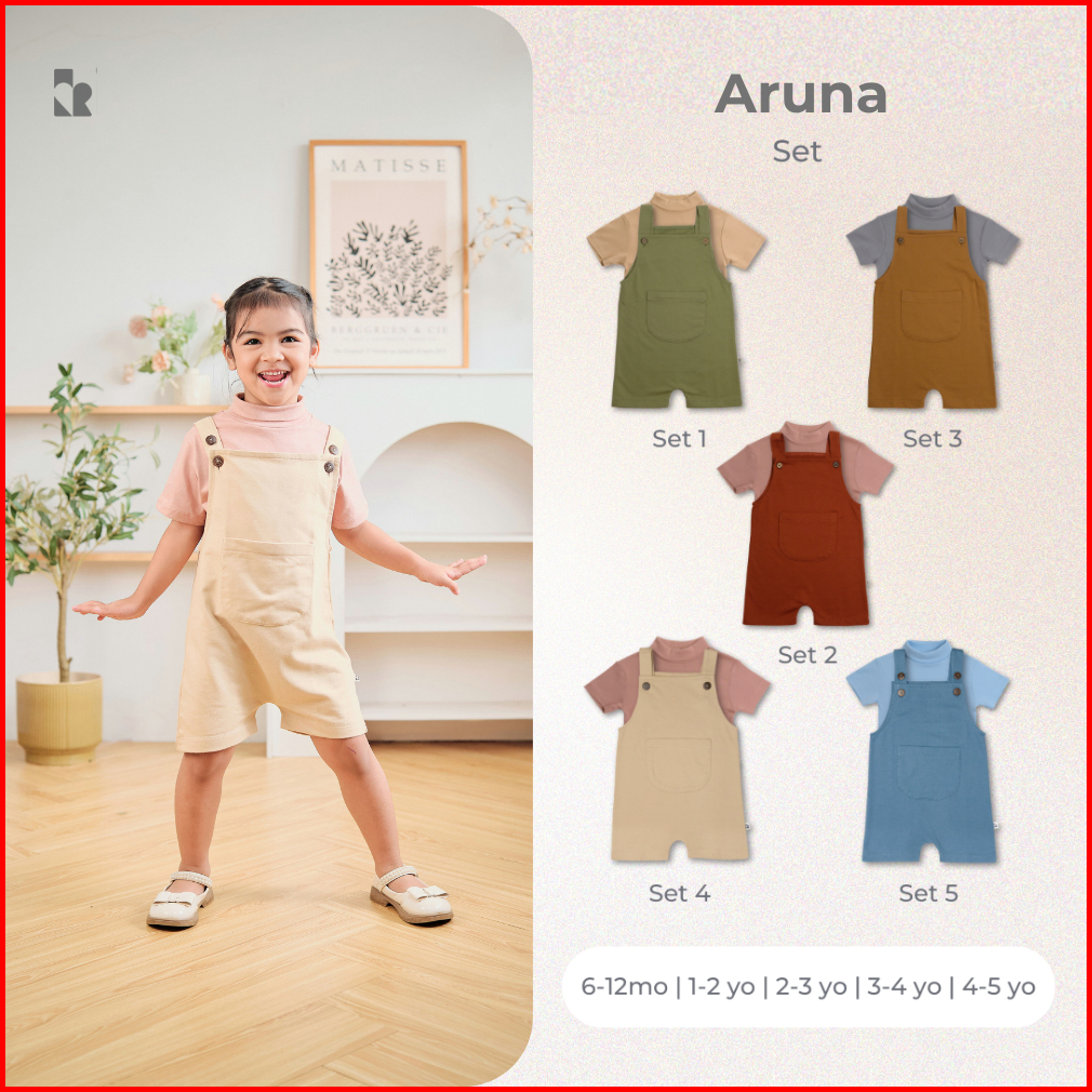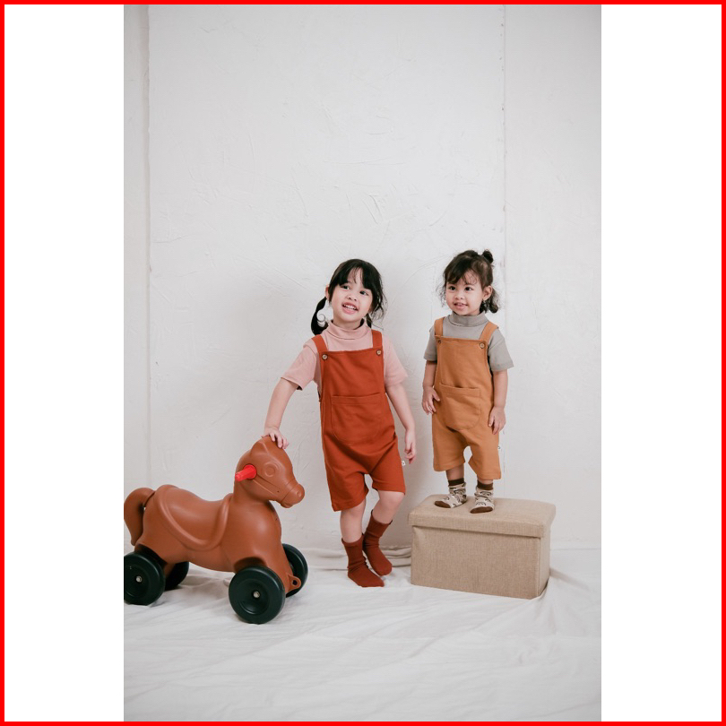 Kindr Aruna Setelan Overall Jumpsuit Dan Kaos Lengan Pendek Anak Perempuan Laki-laki 1 - 5 Tahun