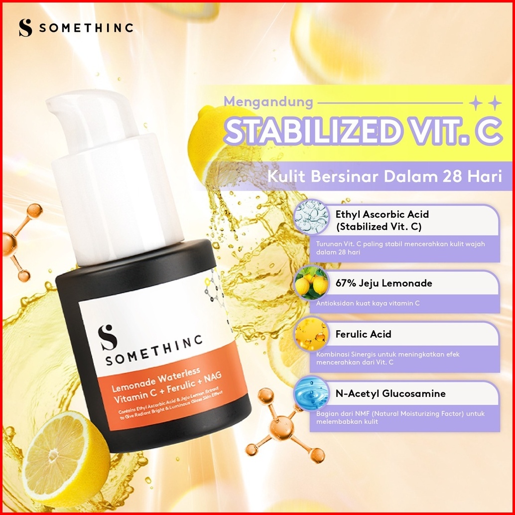 Somethinc Lemonade Waterless Vitamin C Ferulic Nag 20ml Serum Vitamin C Untuk Pencerah Wajah Serum Brightening Untuk Dar