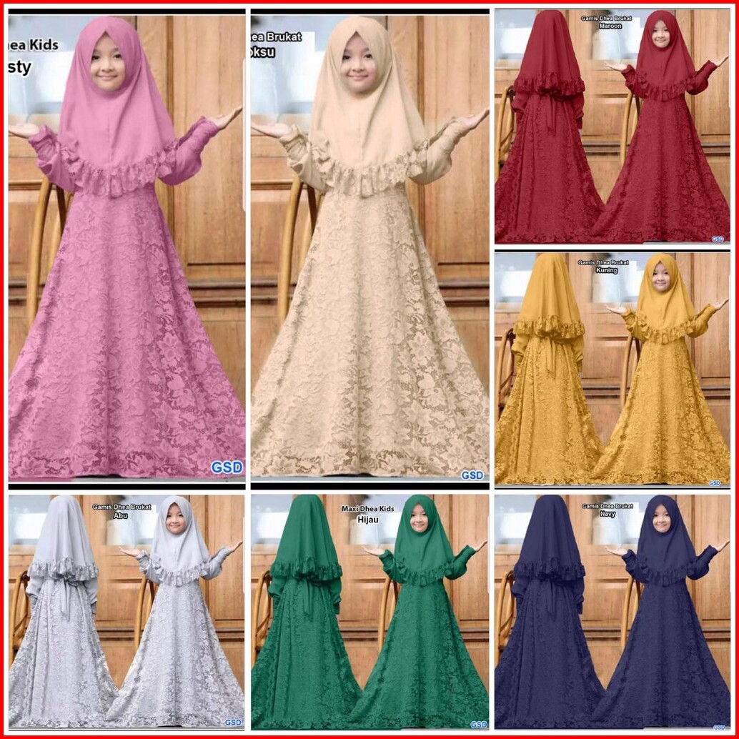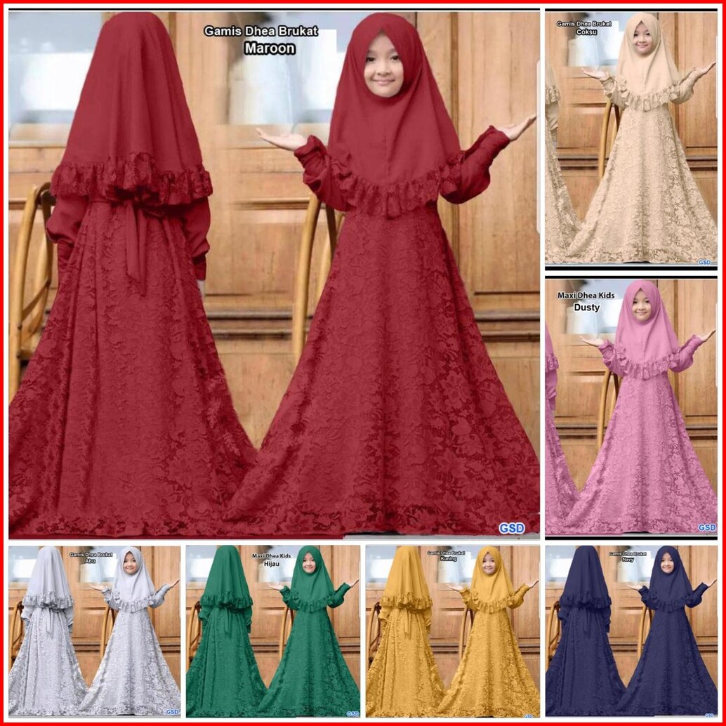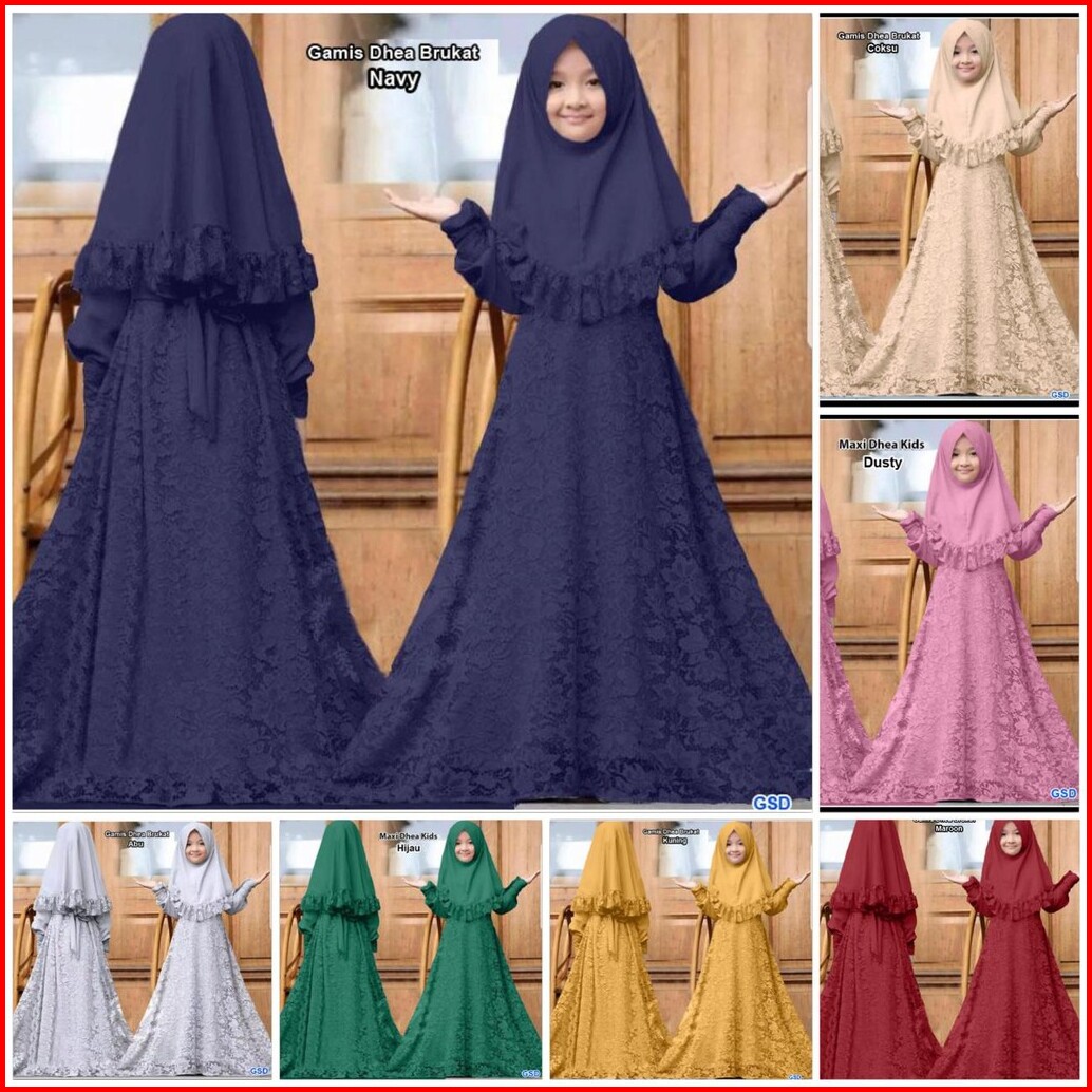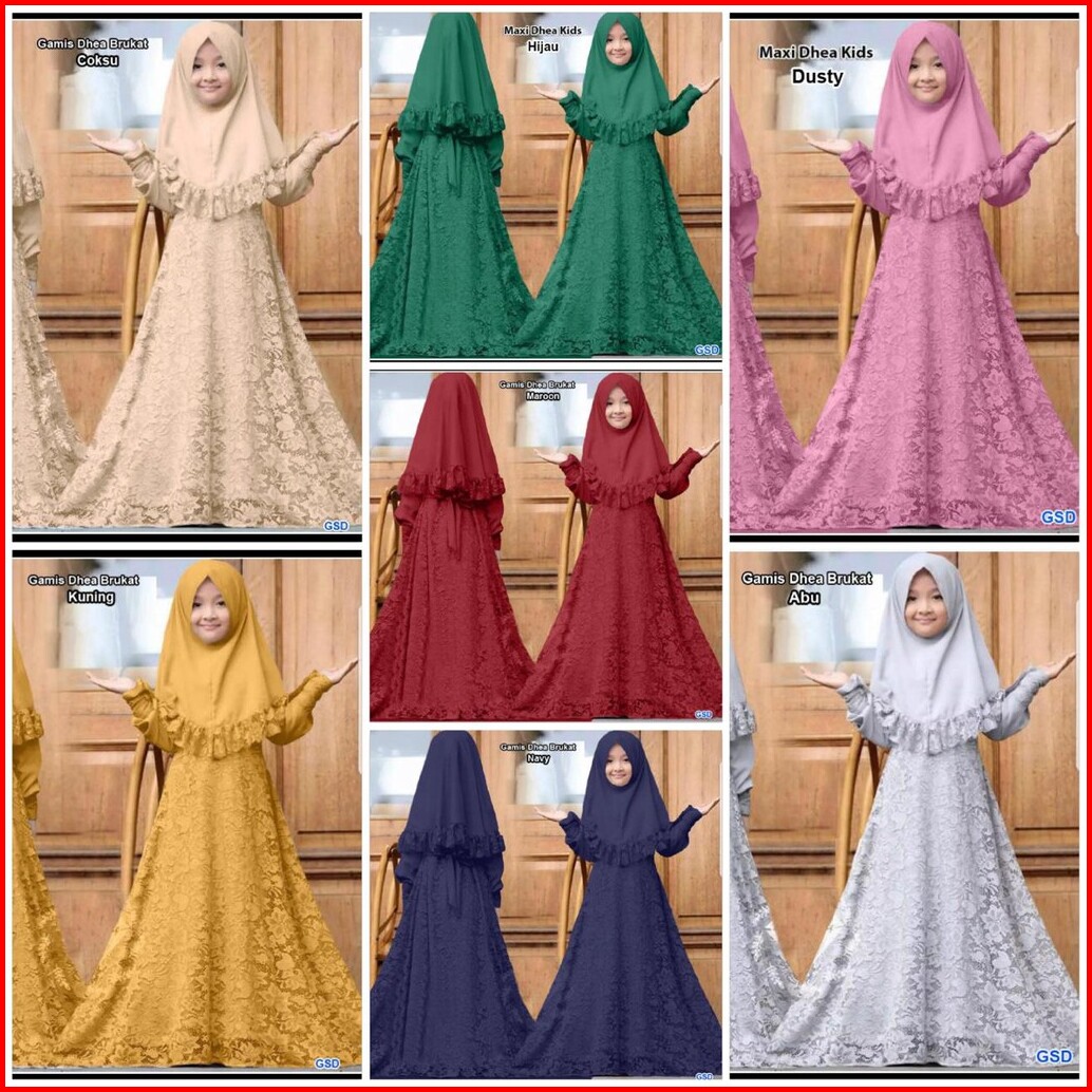 Ada Realpict Gamis Dhea Brukat Tulang Glitter Anak Free Bergo Maxi Dress Muslim All Size Fit 6-9th