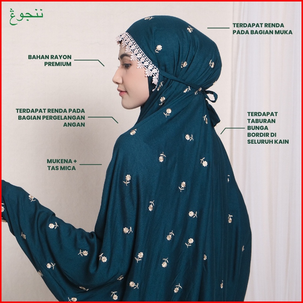 Nanjung Abadi - Mukena Traveling Terusan Viona Bordir Renda Zipper Rayon Premium Jumbo
