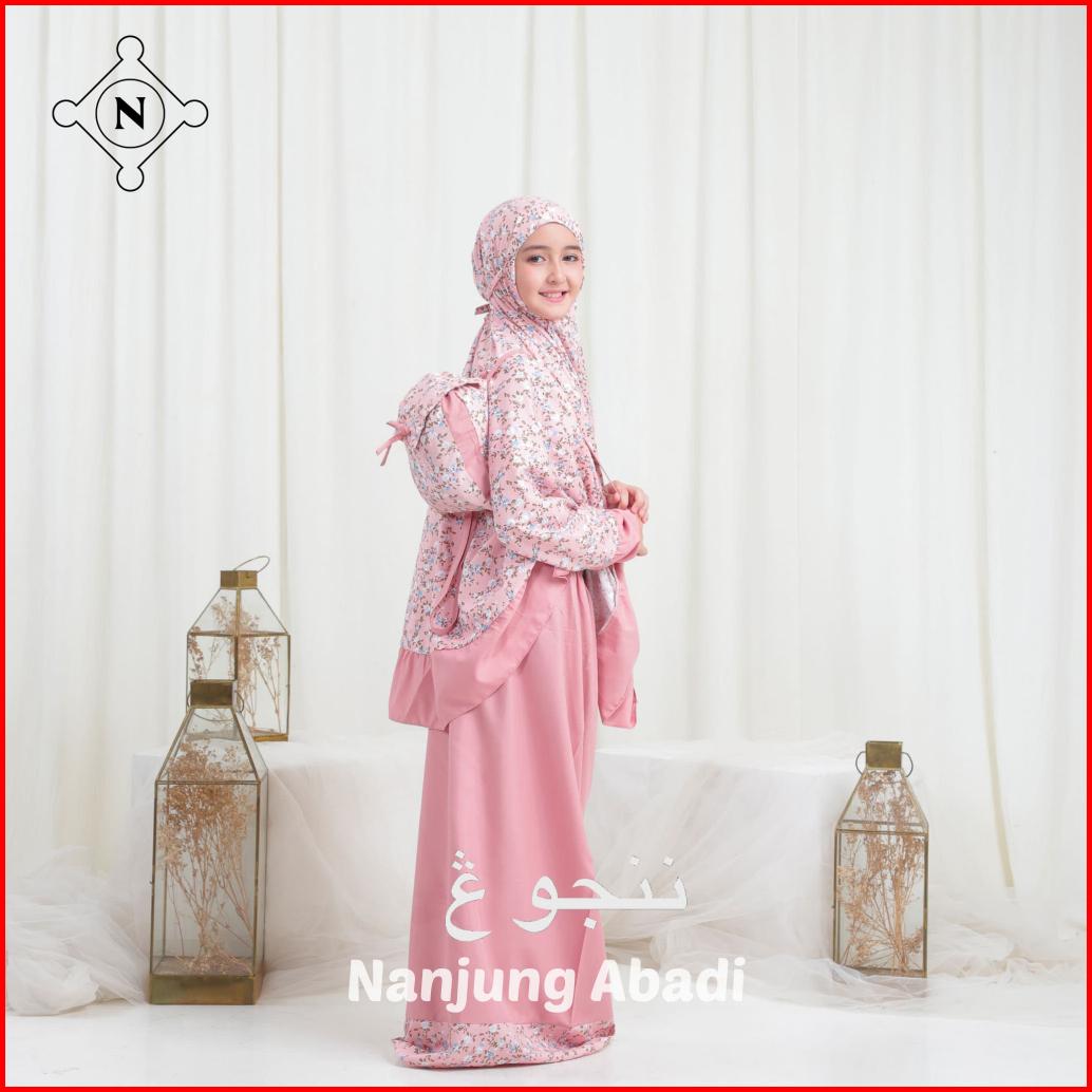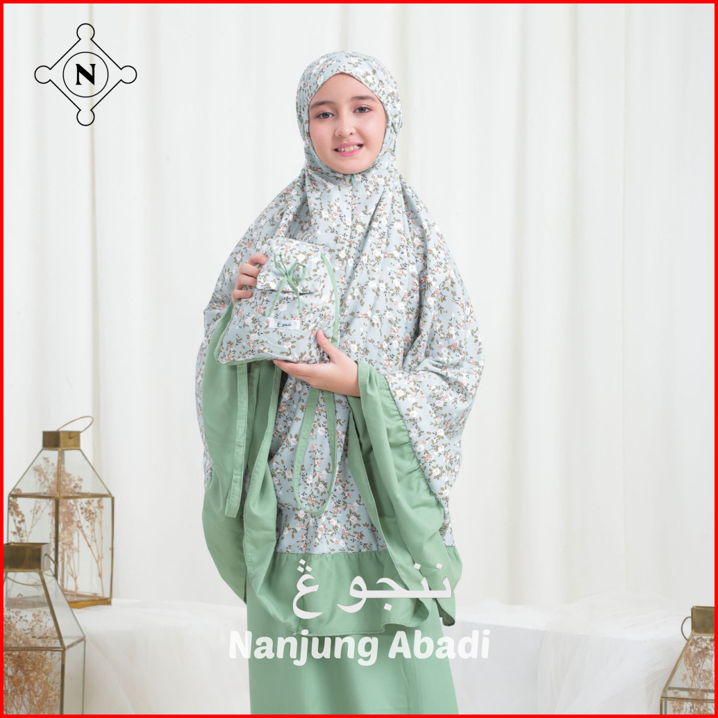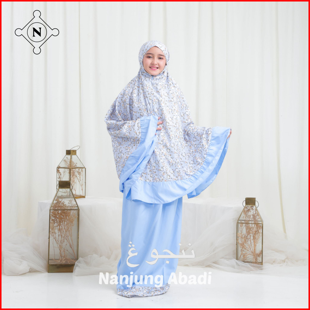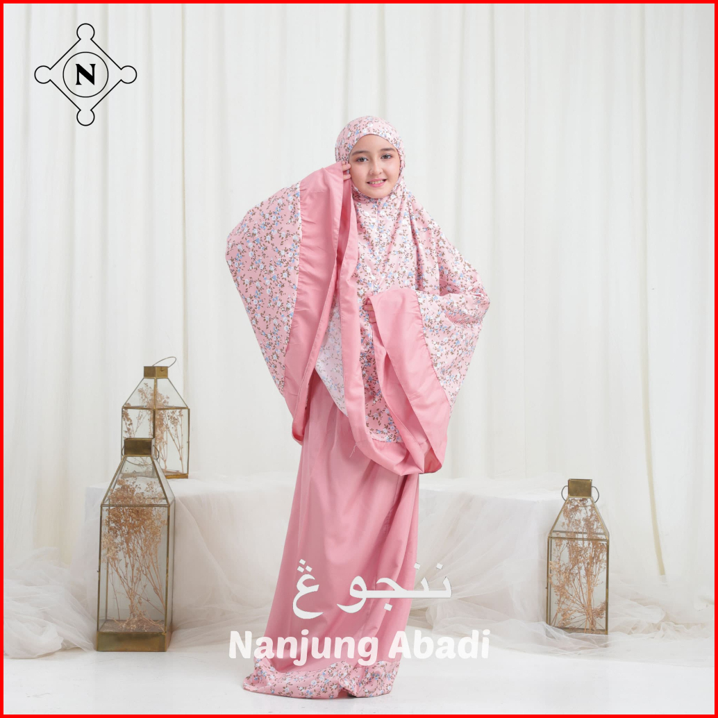Nanjung Abadi - Mukena Anak Perempuan Sd Usia 6-12 Th 2in1 Resleting Katun Motif Bunga Kombinasi Ameena Series