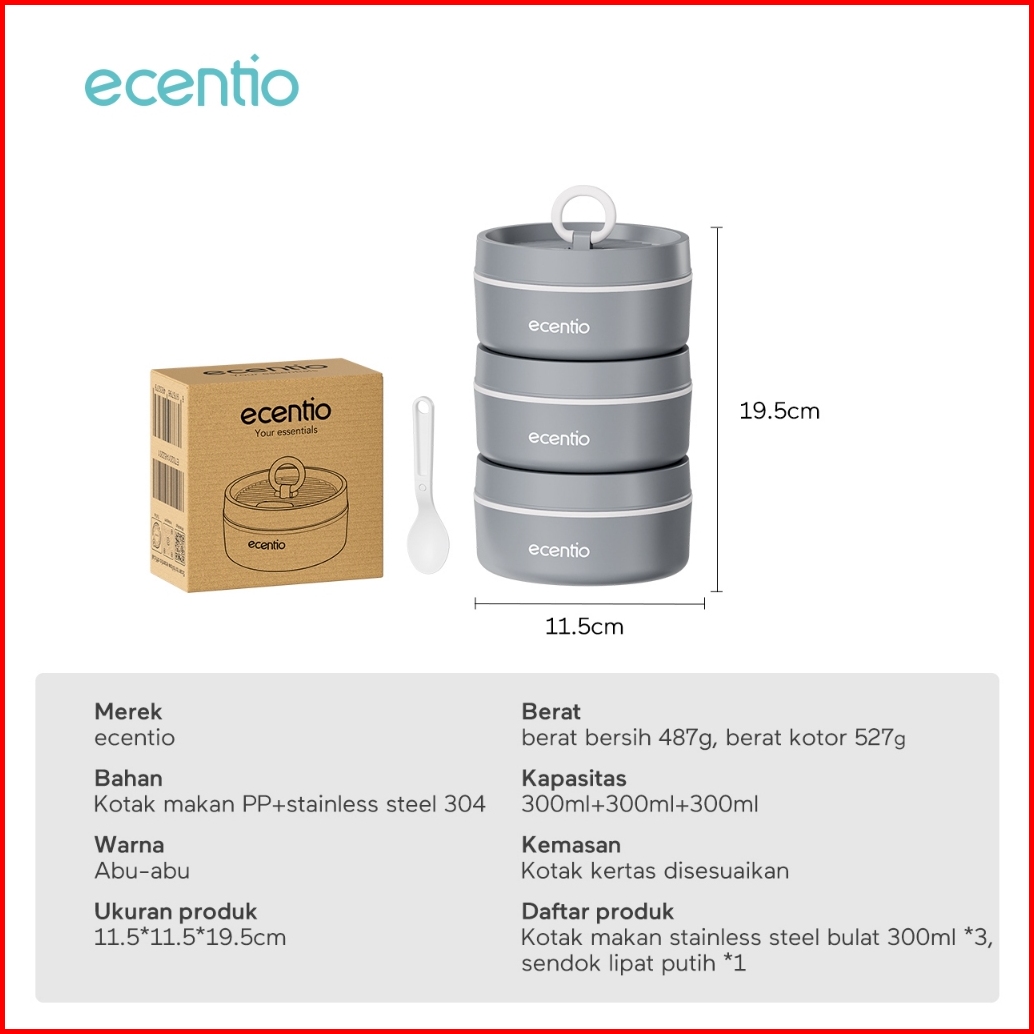 3pcs Setecentio Kotak Makan Siang Bento 300ml Portabel Stainless 304 Tahan Bocor Lunch Box Set Tahan Panas Tempat Makan
